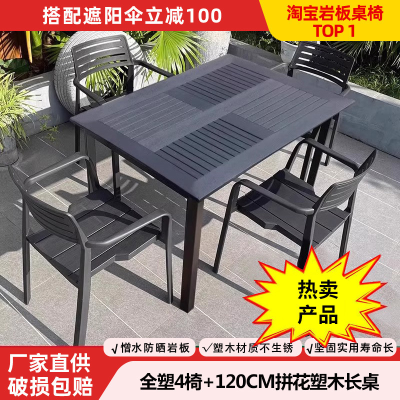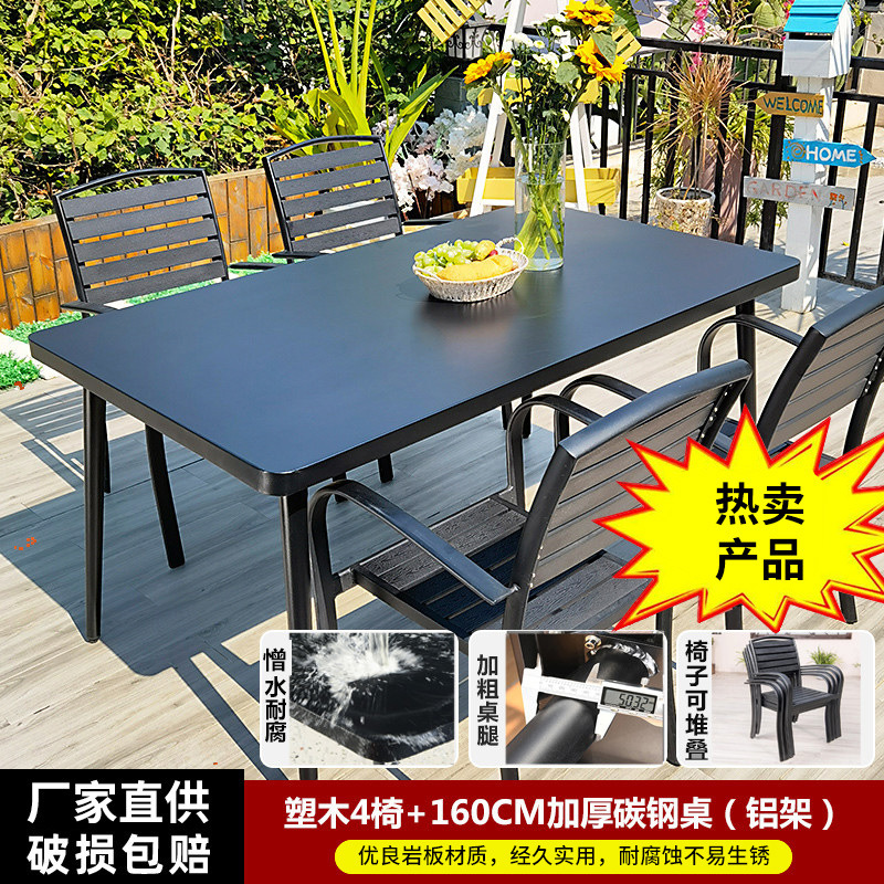 • 플라스틱 목재 의자 4개_160_90CM 두꺼운 탄소강 긴 테이블