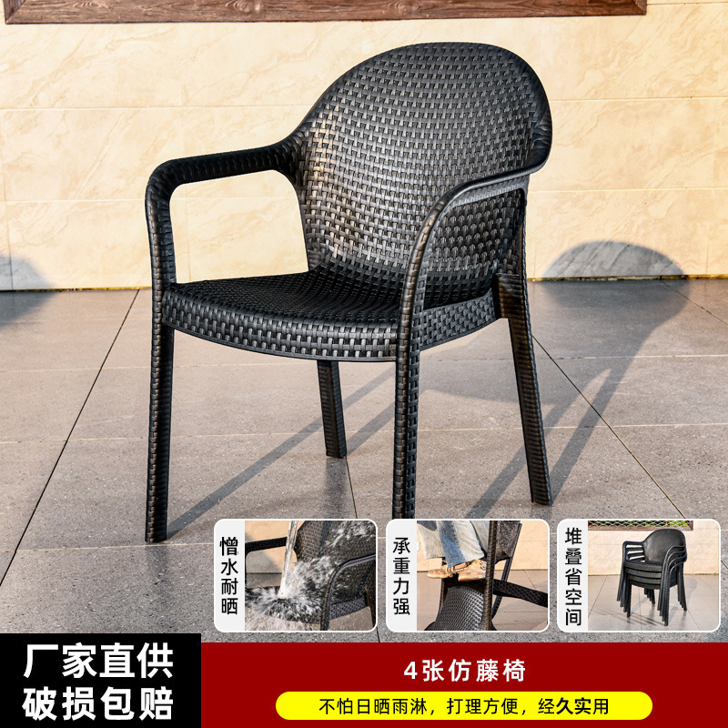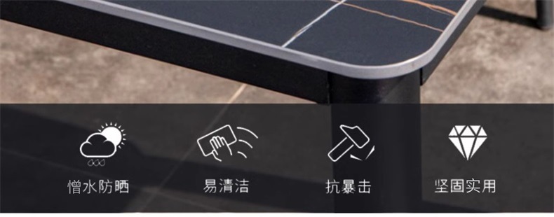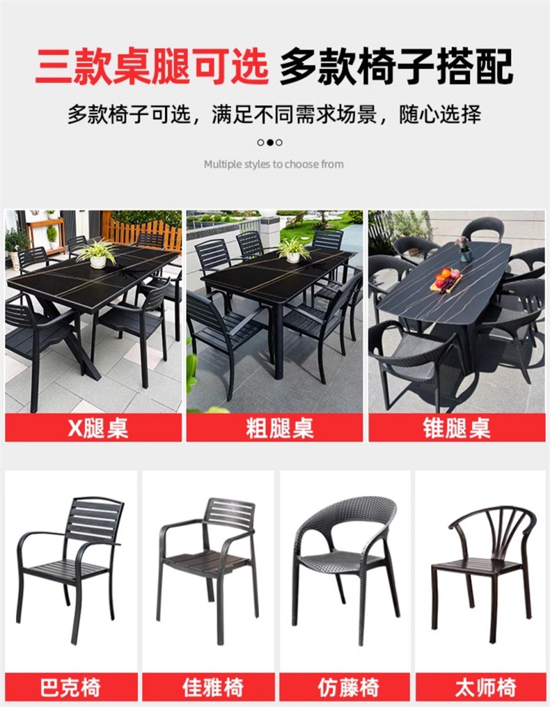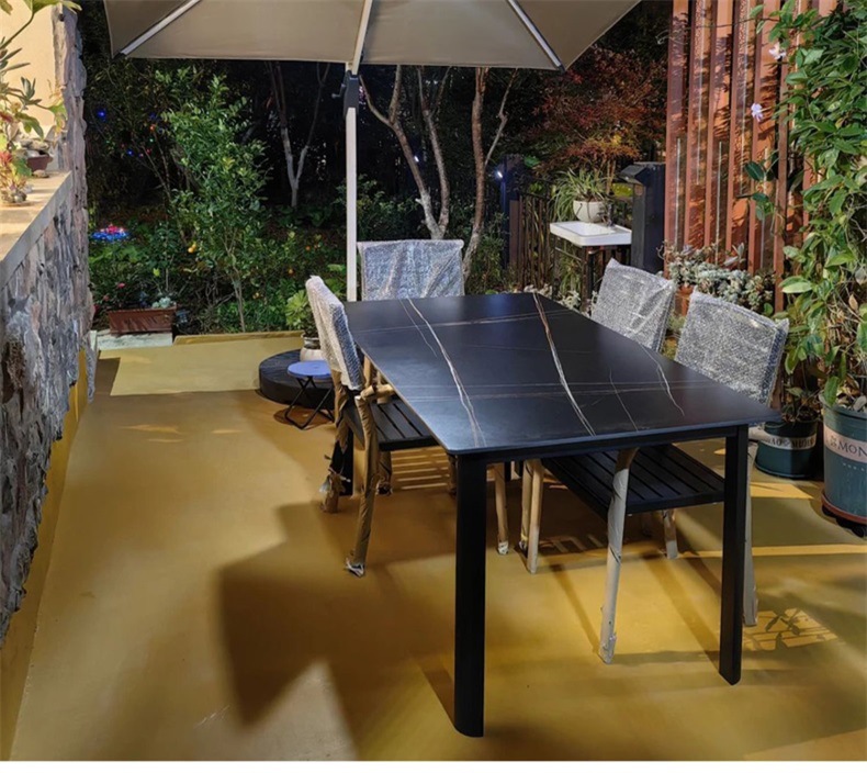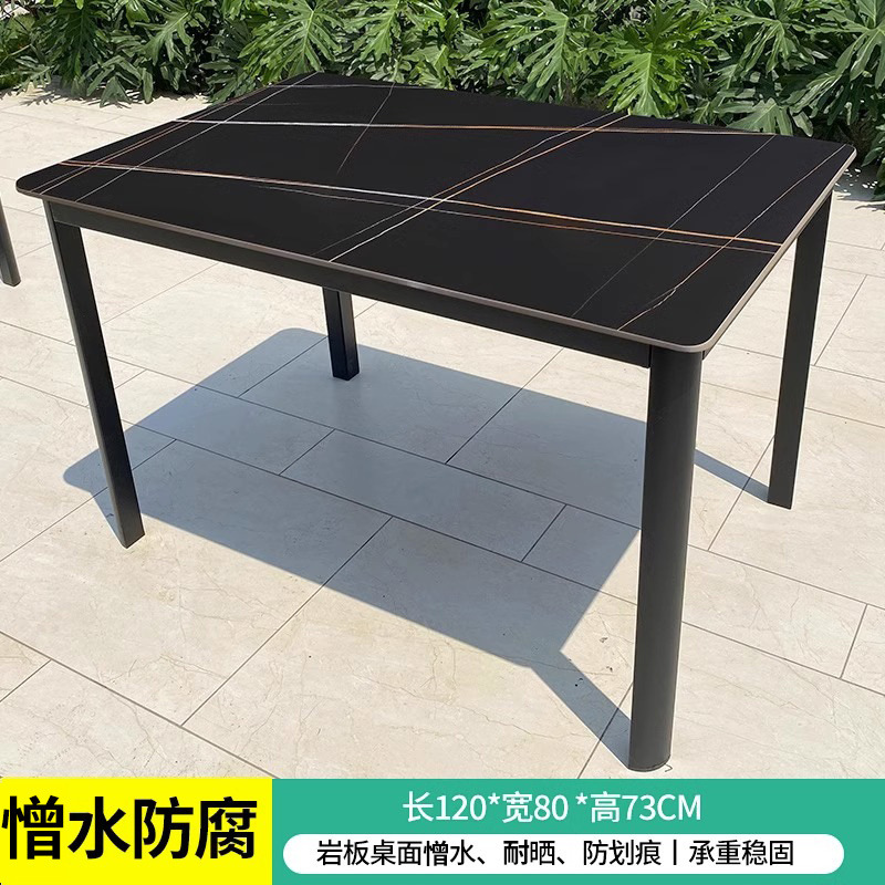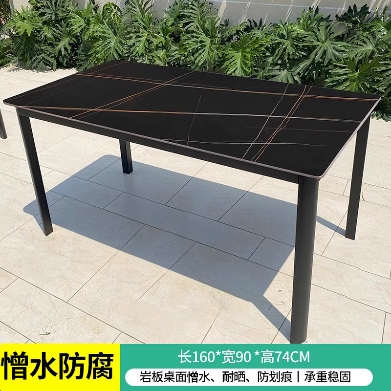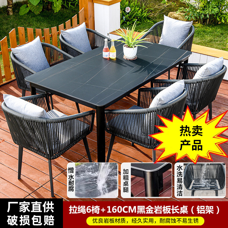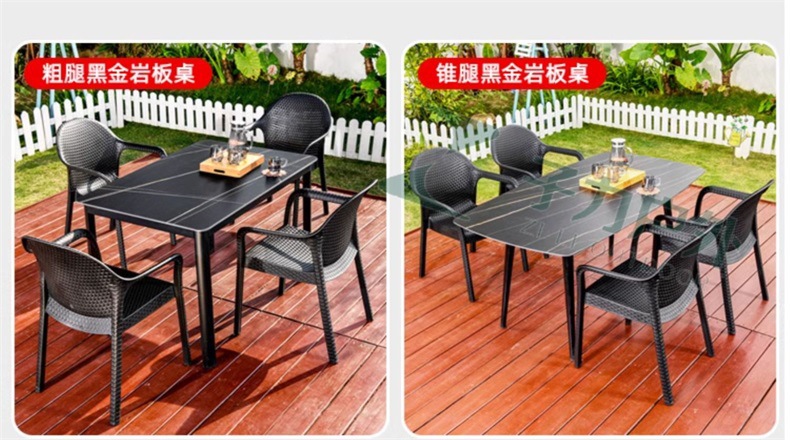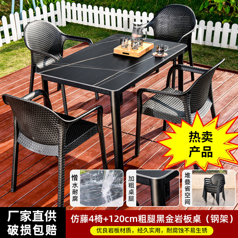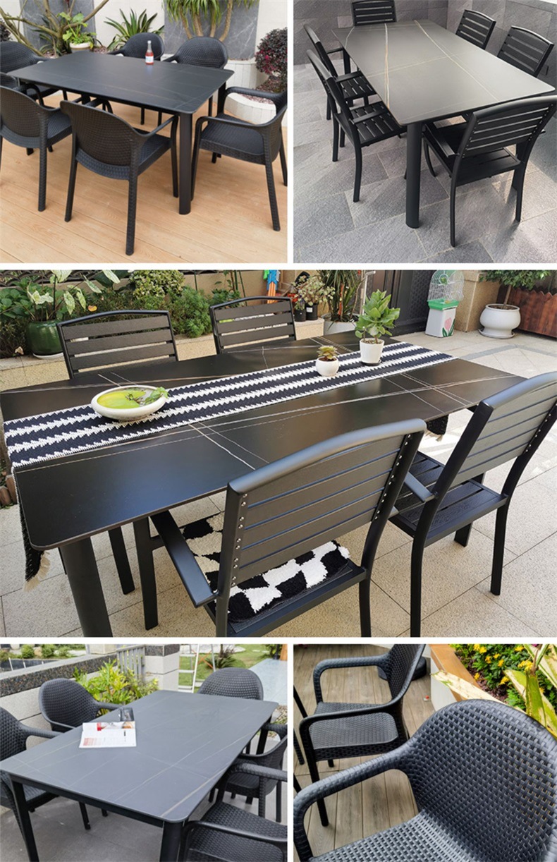 • 알루미늄 프레임] 모조 등나무 의자 6개_120CM 두꺼운 다리 블랙 골드 슬레이트 롱 테이블