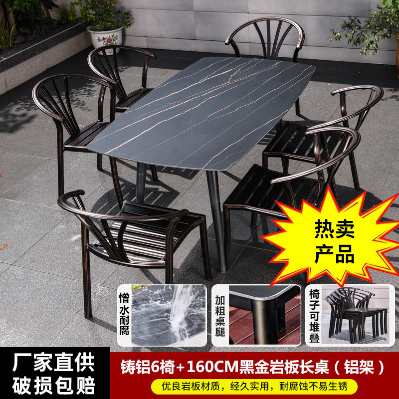 • [올알루미늄] 캐스트알루미늄 6체어_160cm 블랙골드 슬레이트 롱테이블