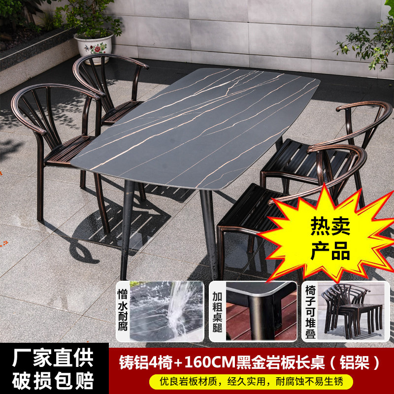 • [올알루미늄] 캐스트알루미늄 의자4개_160cm 블랙골드 슬레이트 롱테이블