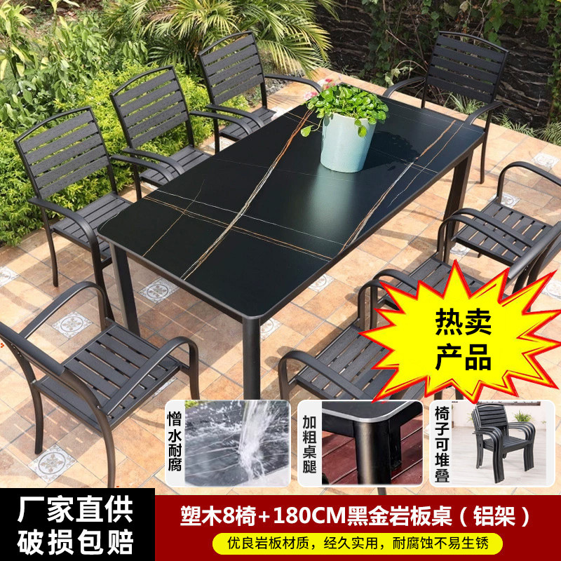 • [알루미늄 프레임] 플라스틱목재 의자 8개_180cmX다리 블랙골드 슬레이트 테이블