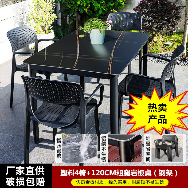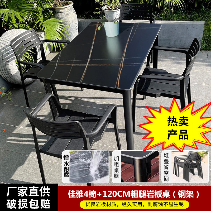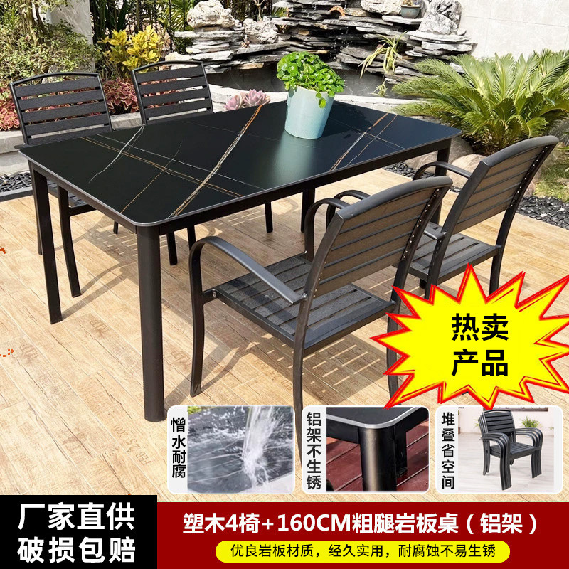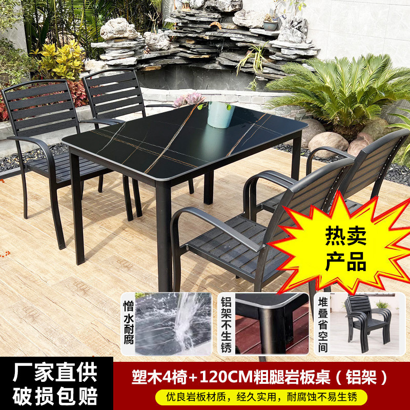 옥외 옥외 옥외 옥외 정원 상업적인 철 테이블 및 의자 조합 안뜰 레저 의자 바위 보드 식사 테이블 옥외 옥외 나무 테이블 및 의자스토어 가기