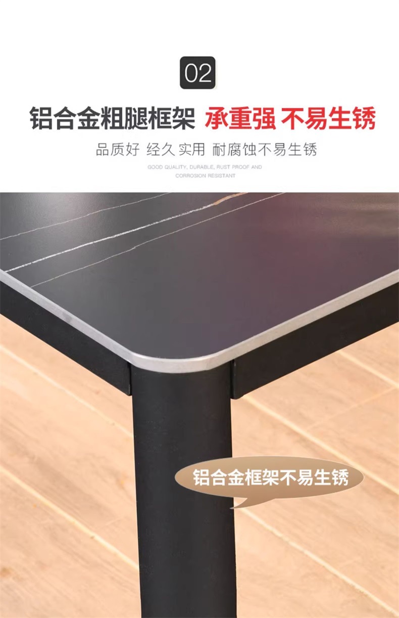 • [알루미늄 프레임] 조임끈 의자 6개_160_90CM 두꺼운 다리 블랙 골드 슬레이트 롱 테이블