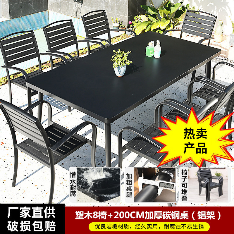 • 플라스틱 목재 8개의 의자_200_100CM 두꺼운 탄소강 긴 테이블