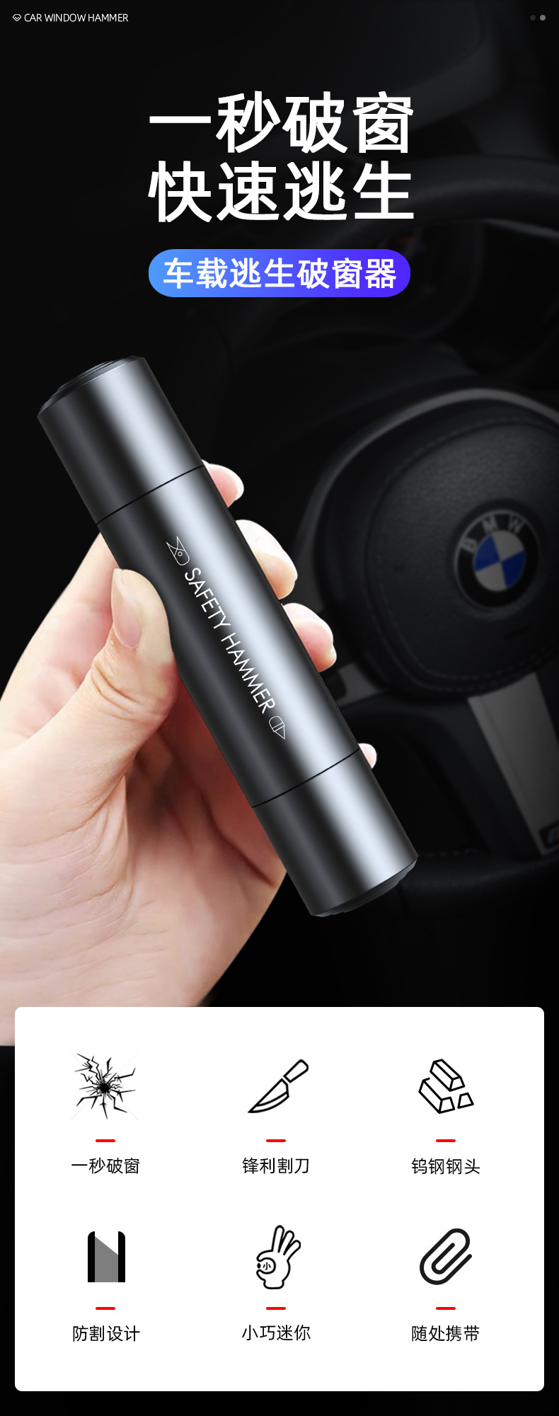 자동차 2 대 1 안전 해머 다기능 깨진 창 망치 숨겨진 안전 벨트 커터 자동차 탈출 깨진 창 유물스토어 가기