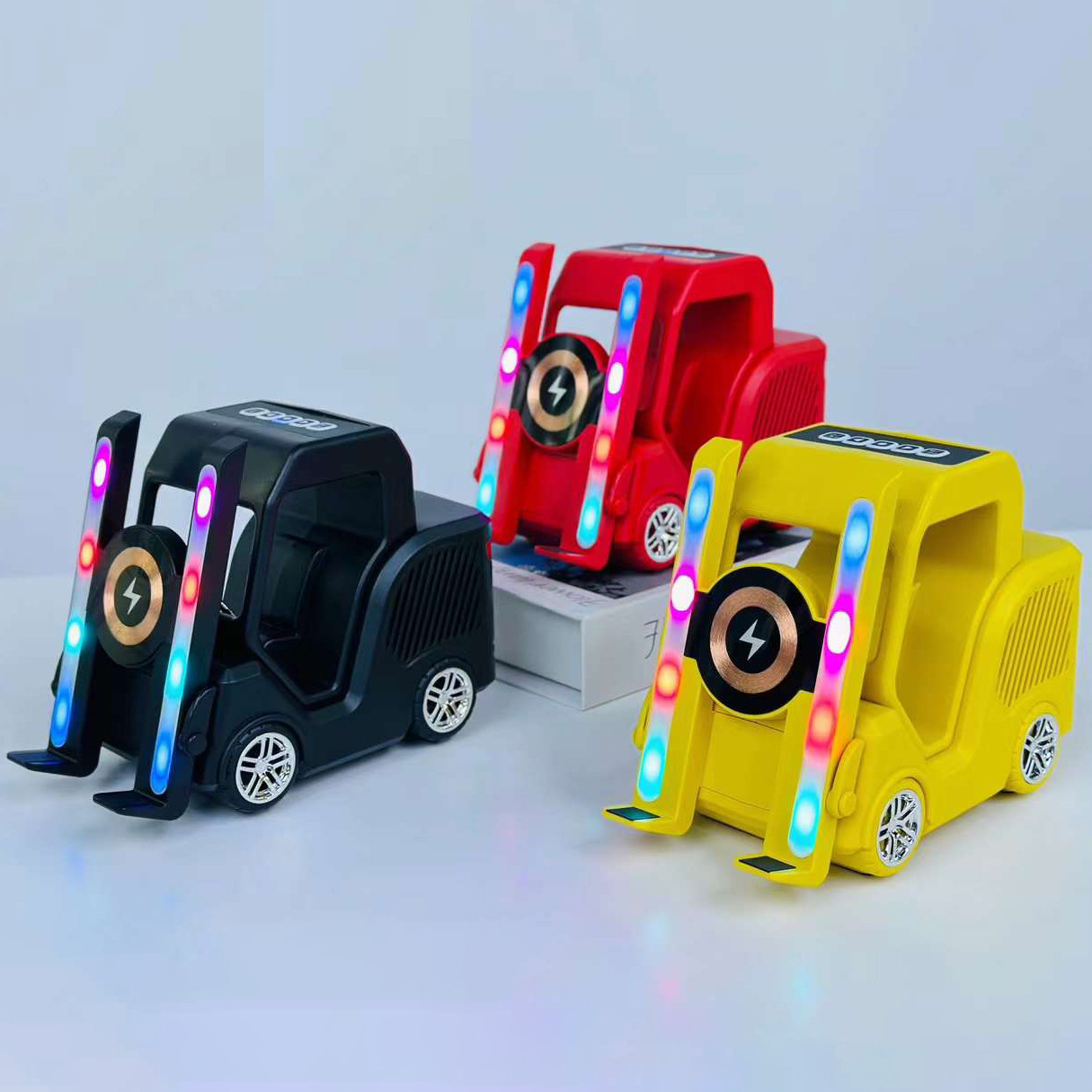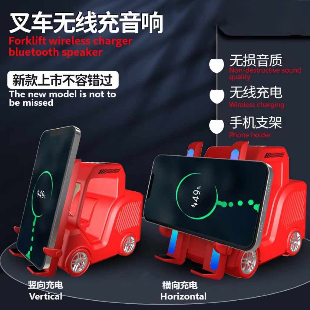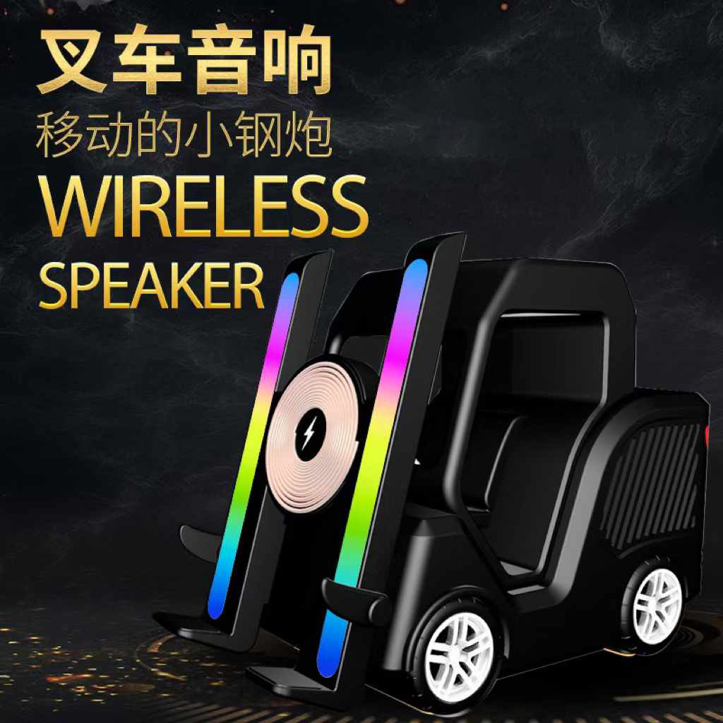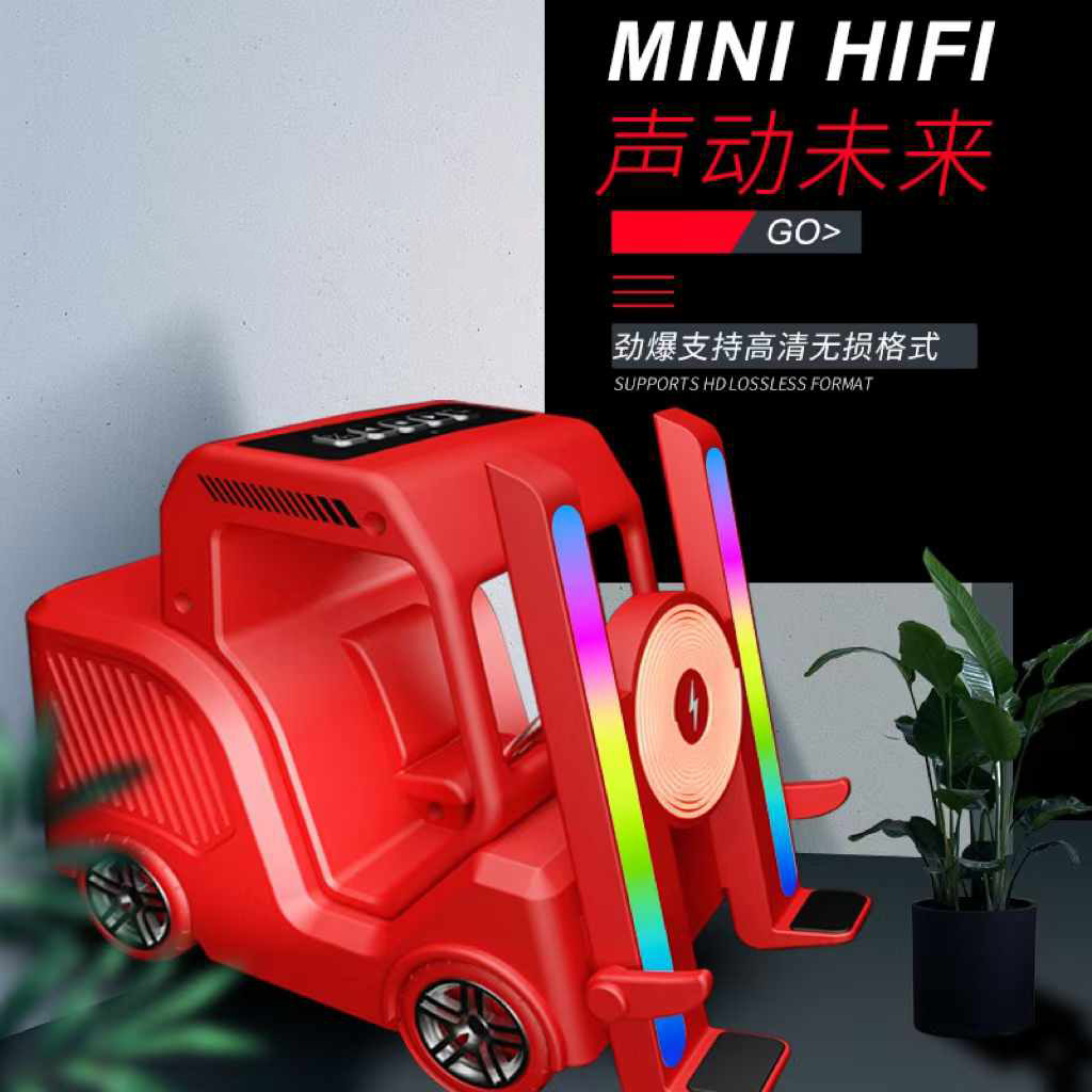 창조적 인 새로운 블루투스 스피커 지게차 모양 서브 우퍼 브래킷 데스크탑 장식품 무선 충전 다기능 오디오스토어 가기