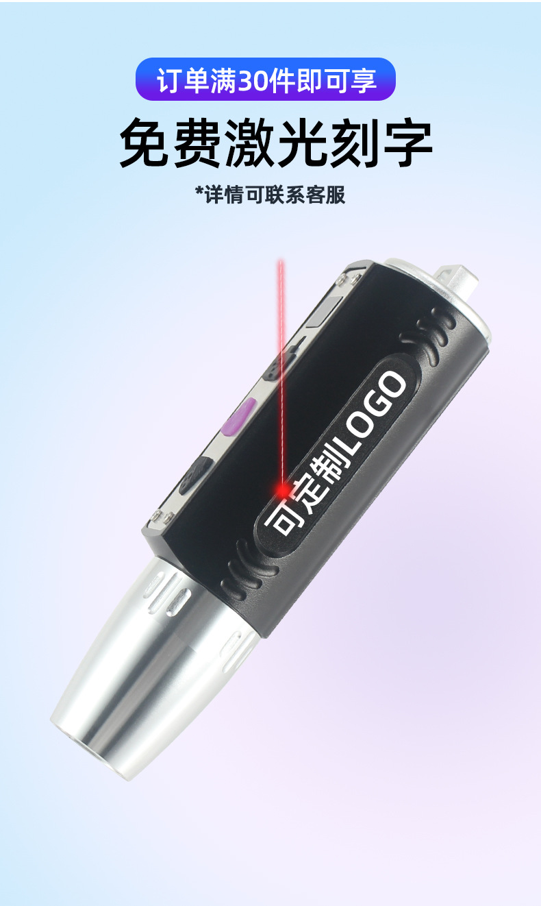 1,紫光365nm--紫光395nm--打开5分钟后自动关闭(默认)(手电关闭状态下长按紫色键--5秒取消此功能,取消成功后显示屏亮起OF慢闪三次提示,重复操作恢复此功能,恢复成功后显示屏亮起On慢闪三次提示)