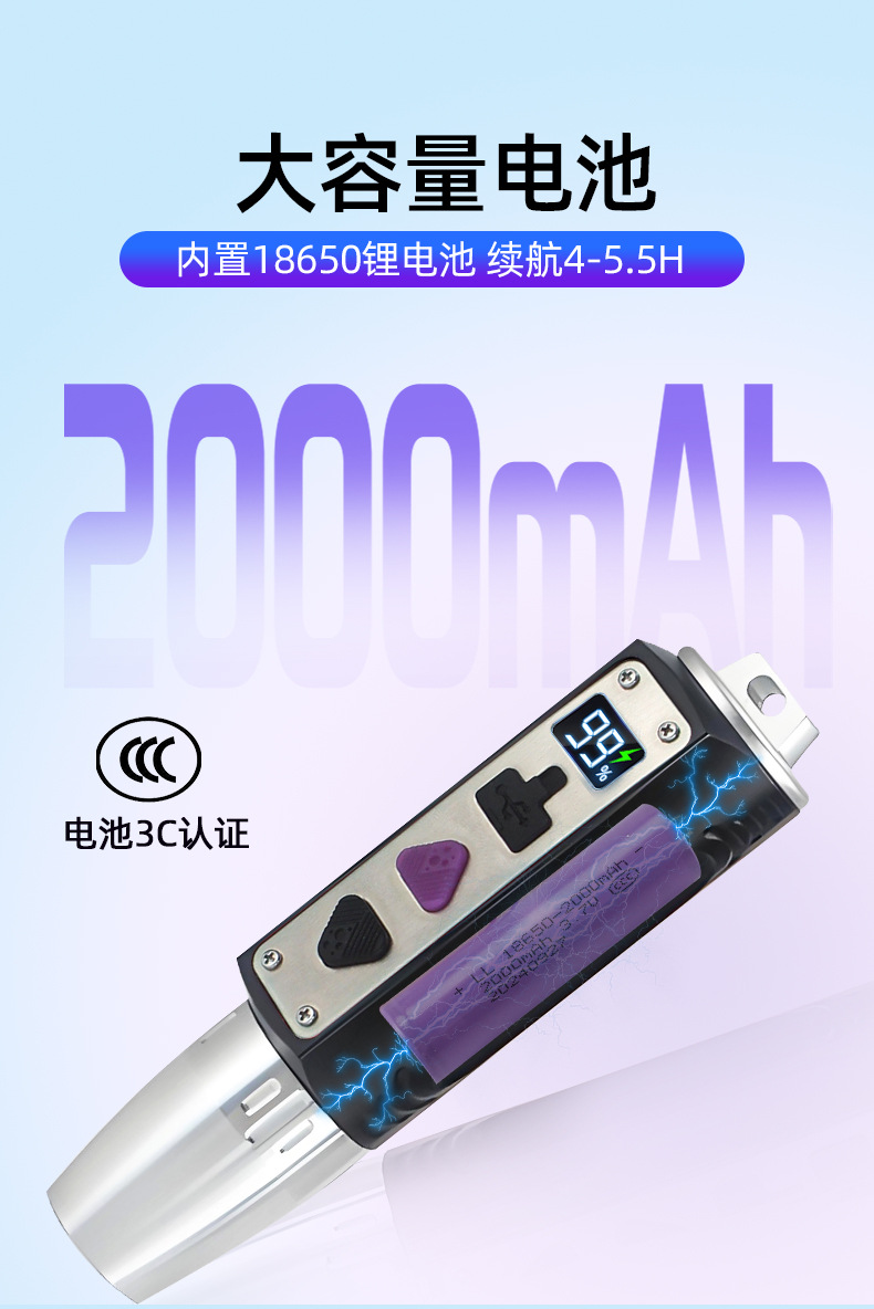电池:18650电池 容量:2000mAh(CCC认证)