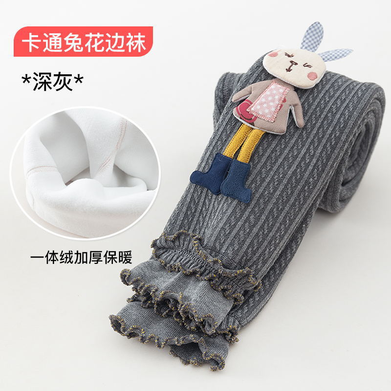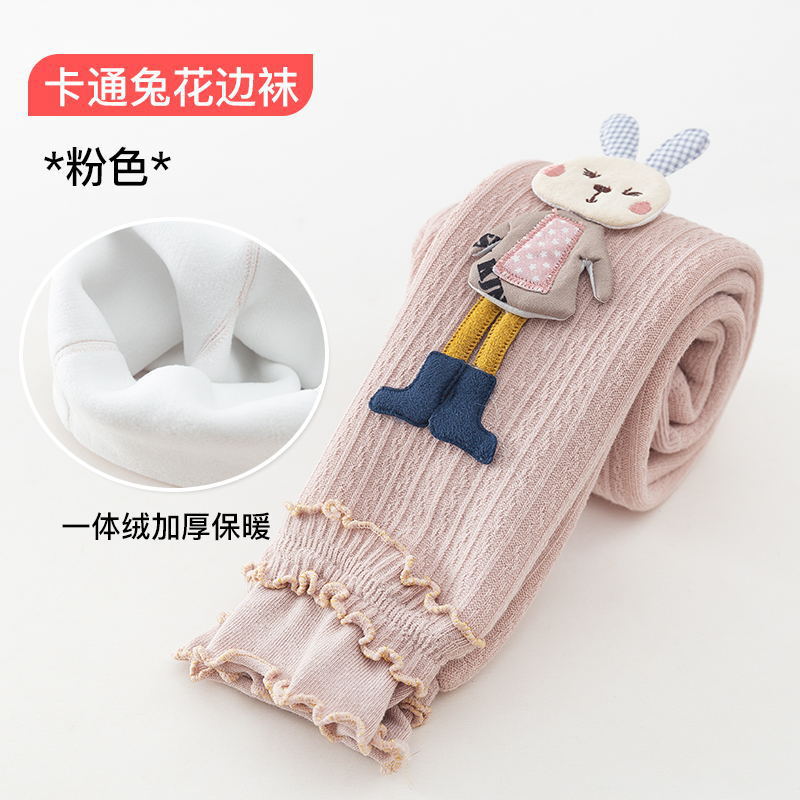 겨울 소녀 기모 두꺼운 레깅스 만화 토끼 어린이 레이스 원피스 코튼 바지 아기 자른 바지