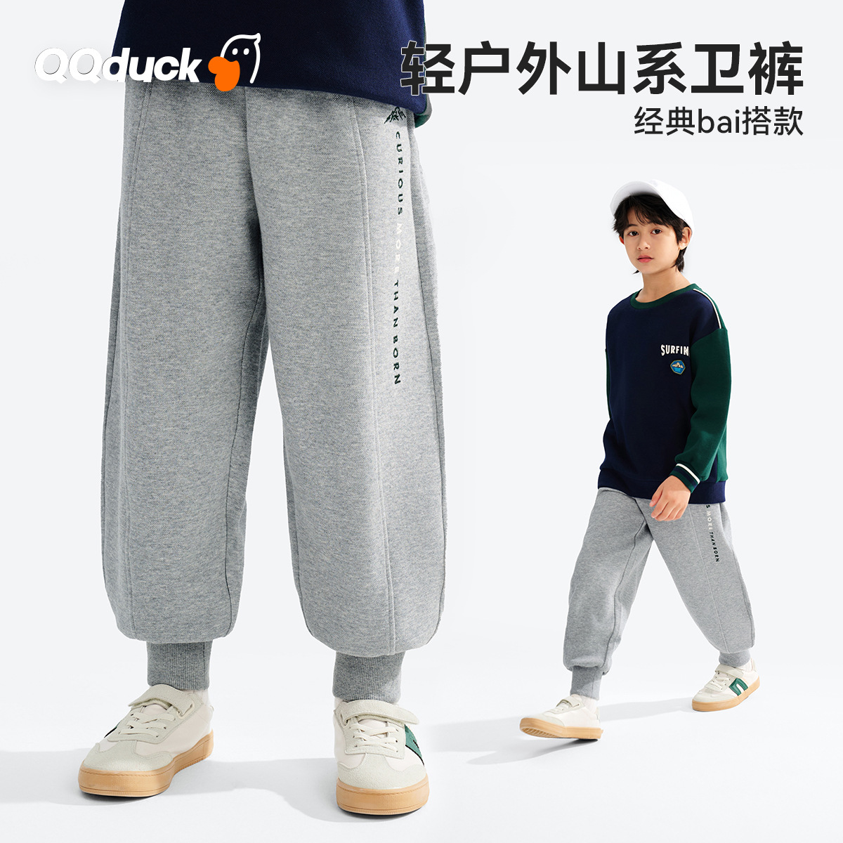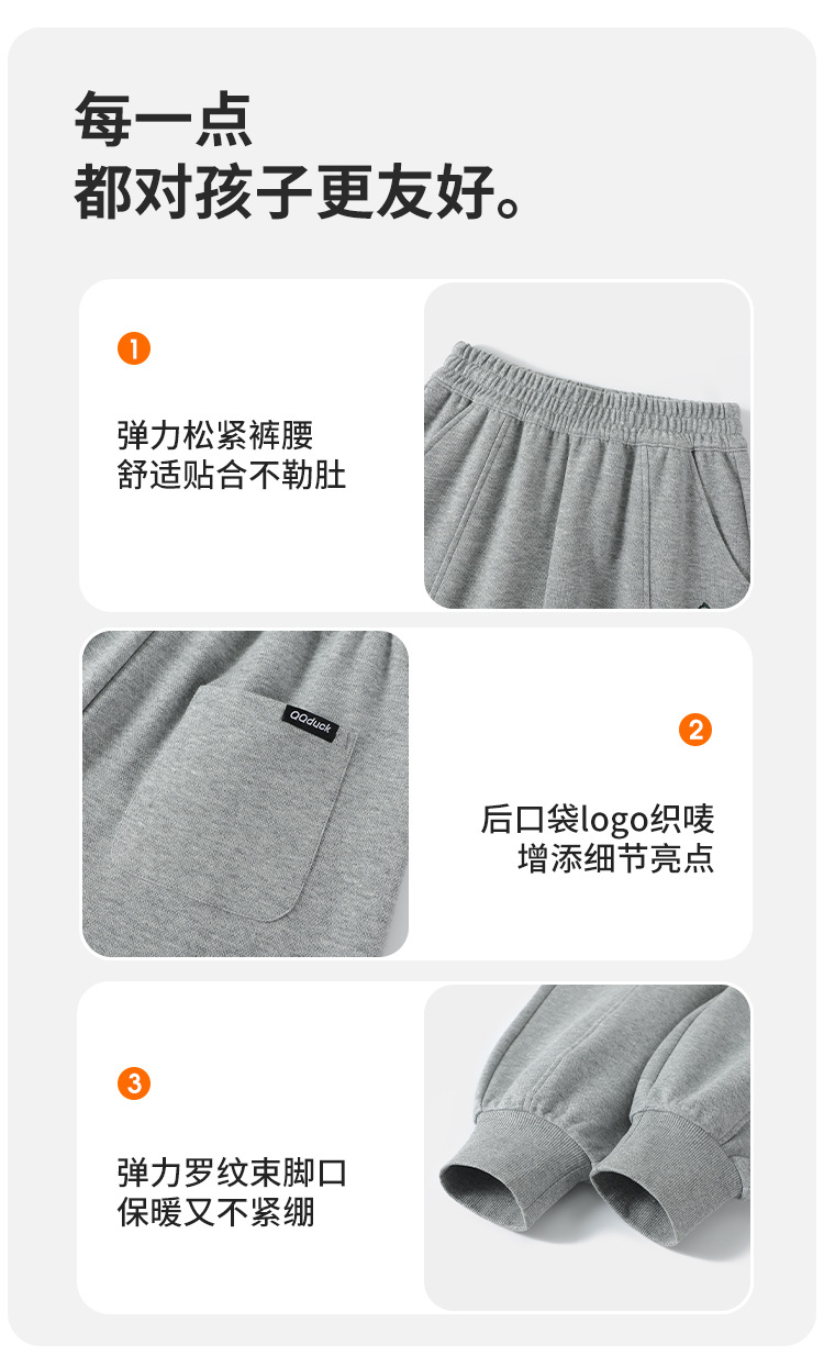 QQduck 코코덕 어린이용 긴바지 남아용 스웨트팬츠 봄 신상 캐주얼 팬츠 중대형 어린이용 다용도 조거 팬츠