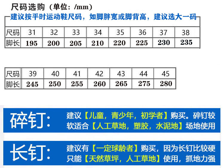 아동용 짧은 스파이크 축구화, 남성용 로우탑 인조잔디 롱 스파이크, 청소년용 운동화, 남성용 다용도 축구화