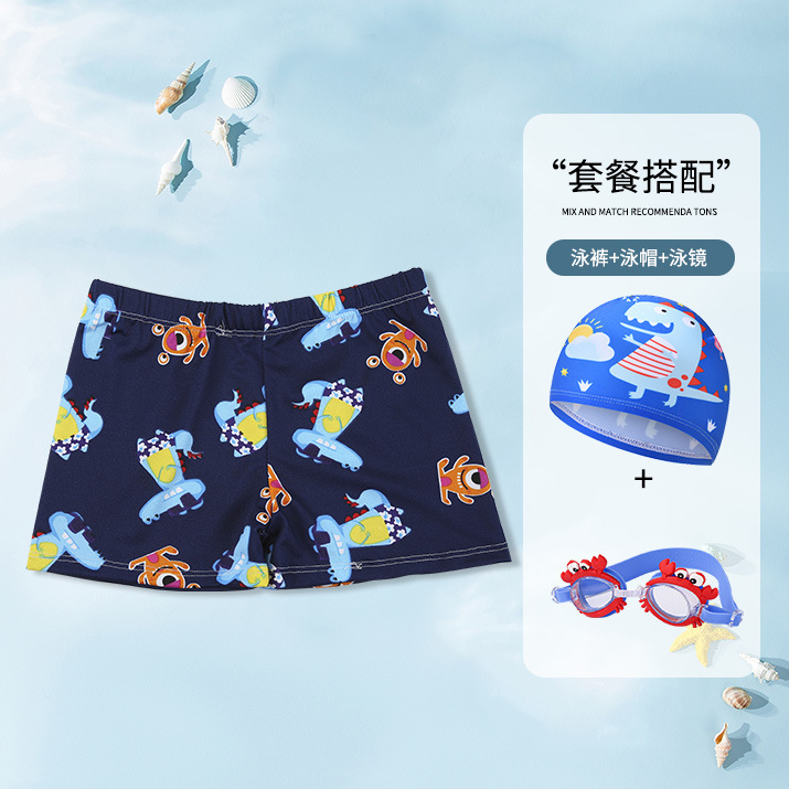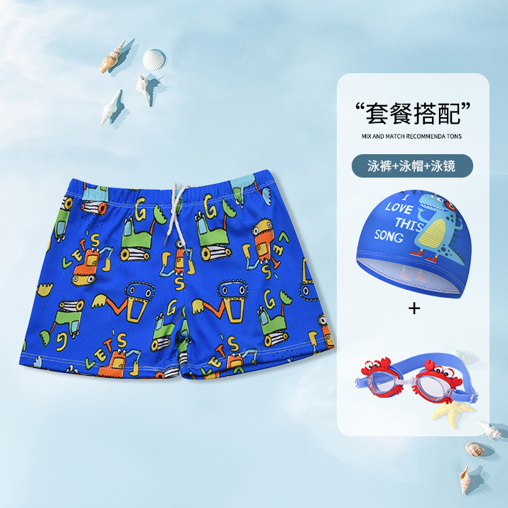 • 파란색 바닥 굴삭기-48 [수영 트렁크 + 수영 모자 + 수영 고글]