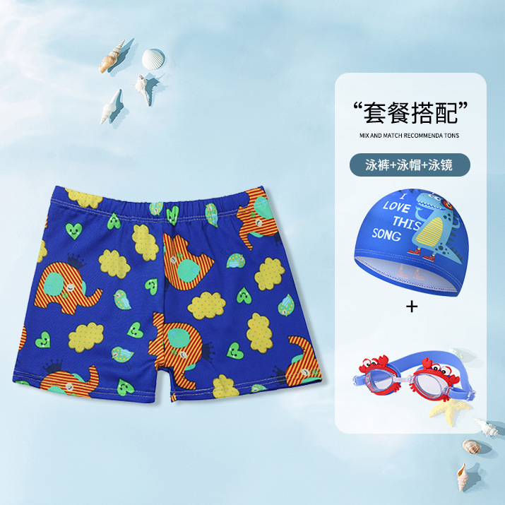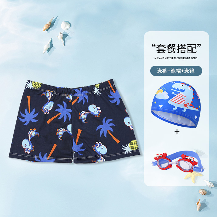 • 남색바닥공룡-36 [수영팬츠+수영모+수영고글]