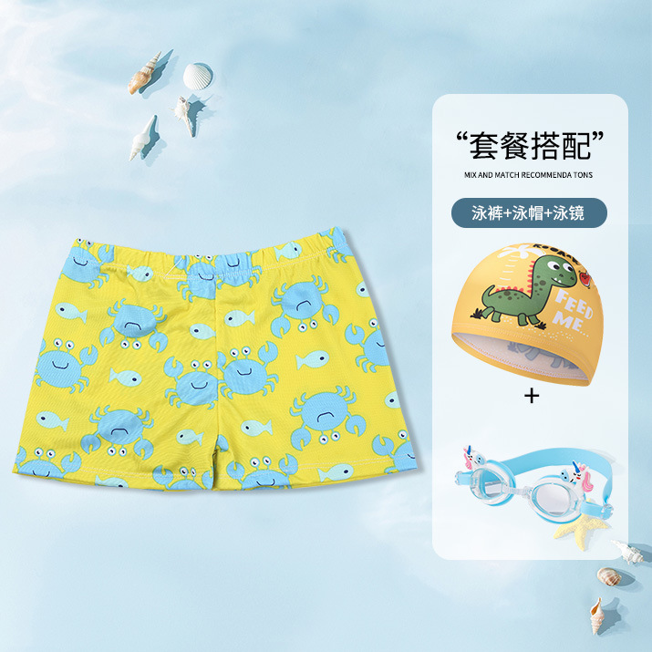 • 노란바닥 작은게-42 [수영팬츠+수영모+수영고글]