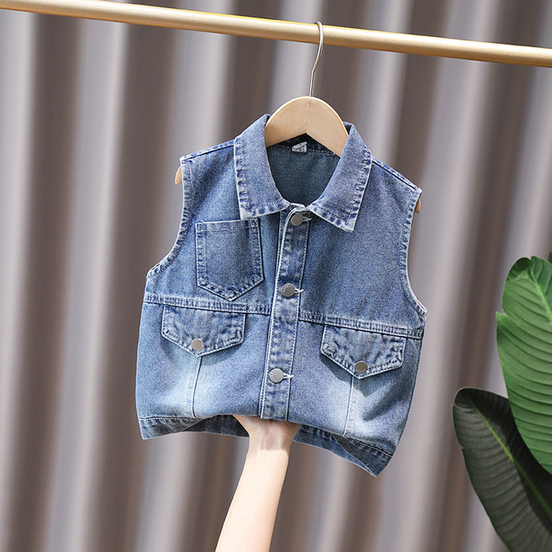 아기의 어깨 착용 소년의 데님 조끼 어린 소년의 봄과 가을 새로운 조끼 한국식 어린이 조끼
