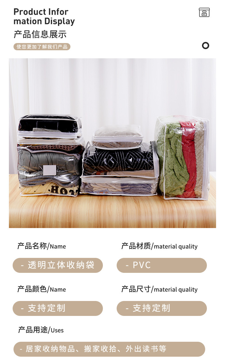 투명한 시각적 방수 저장 가방 가정용 이불 이동 가방 대용량 PVC 옷 이불 적합 가방