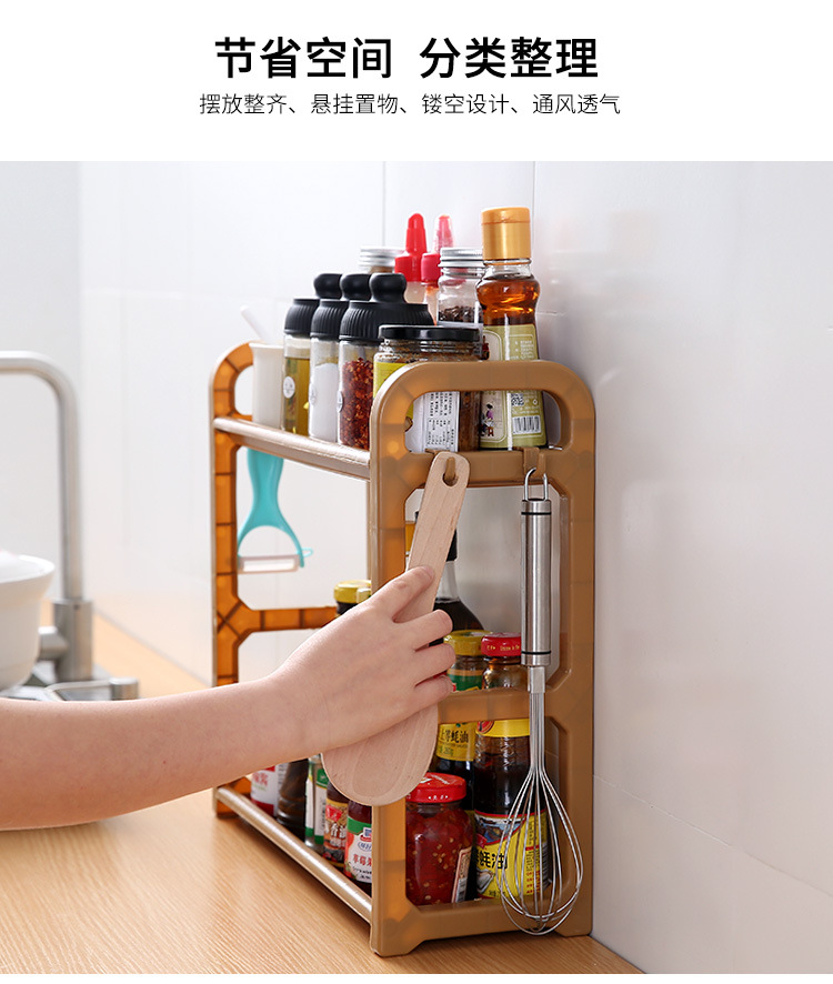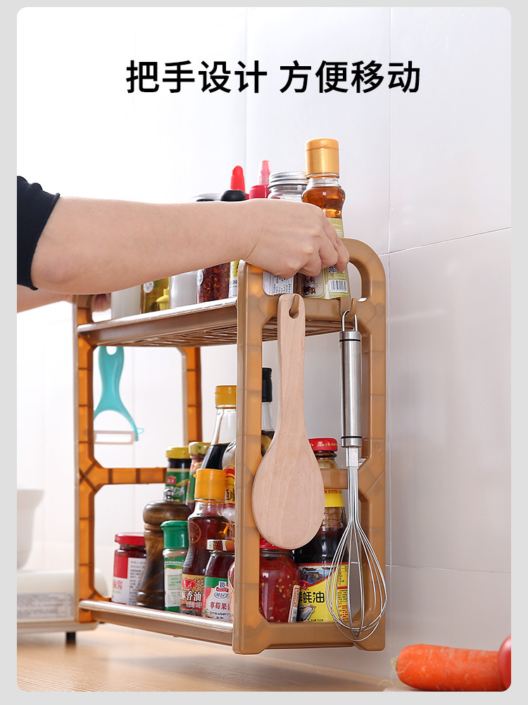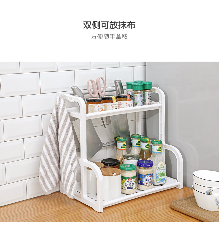 주방 더블 레이어 스토리지 랙 펀치 프리 조미료 랙 스토리지 랙 플라스틱 다기능 조미료 상자 세트 커터 보드 나이프 랙