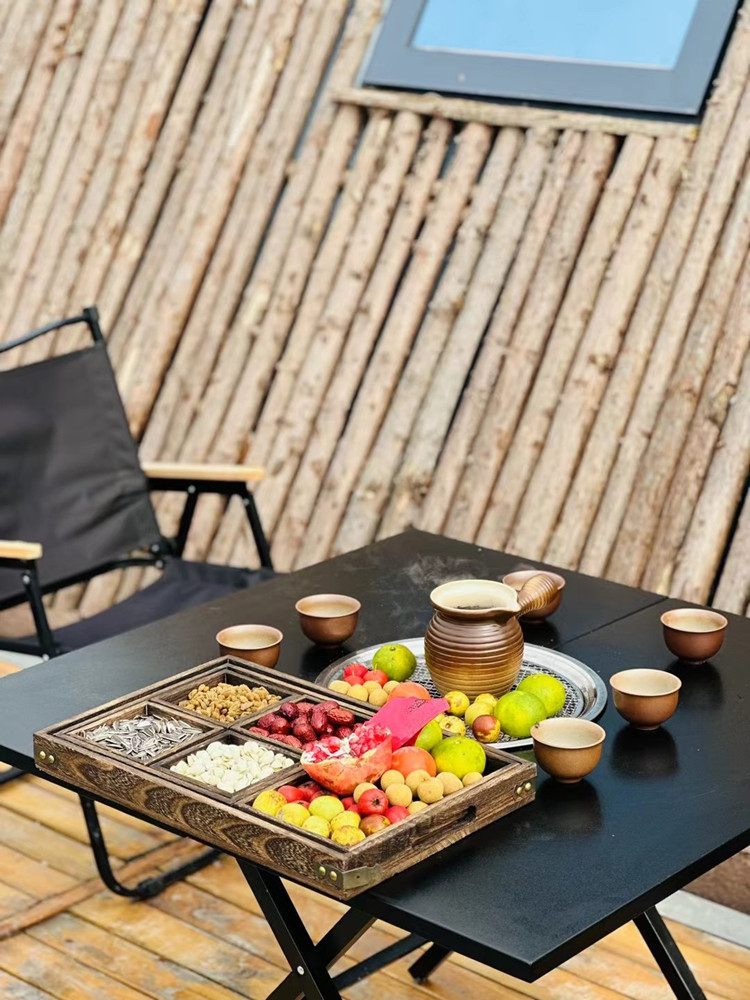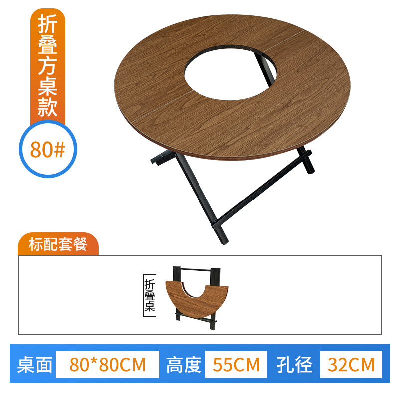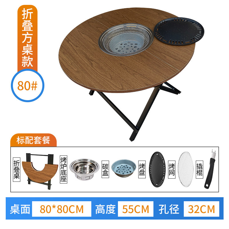 • 원목판 나뭇결 80*80*55 원형 테이블(베이킹 그릴 + 베이킹 팬 전체 세트 포함)