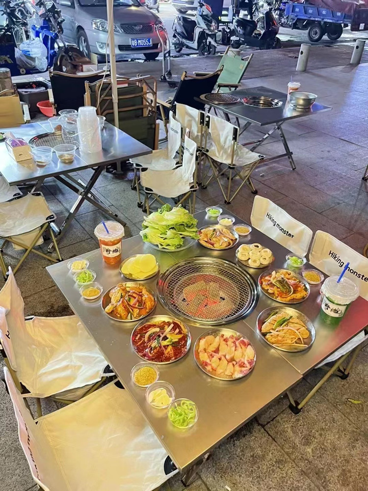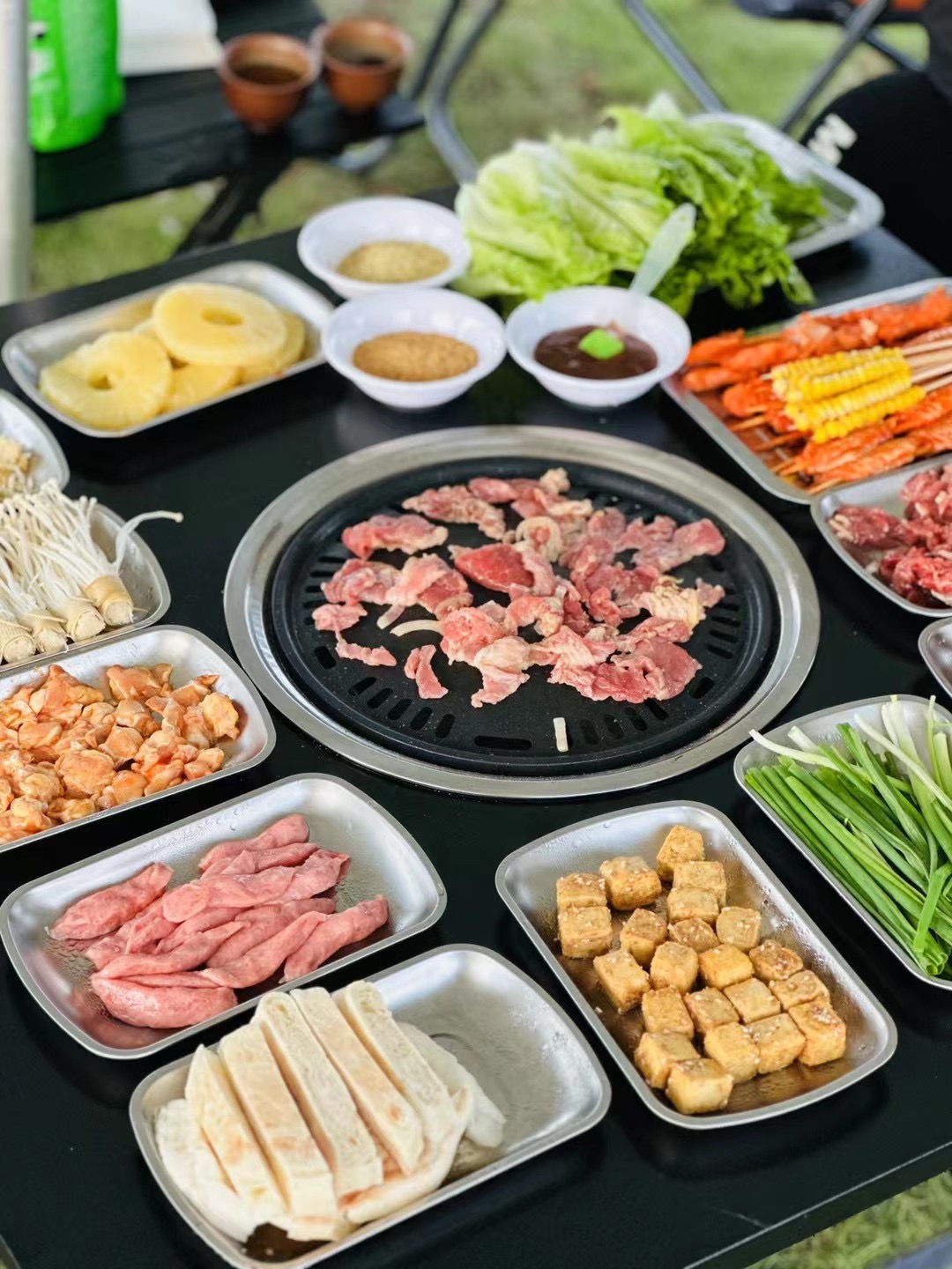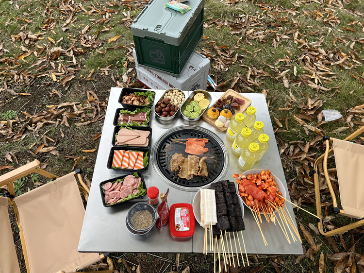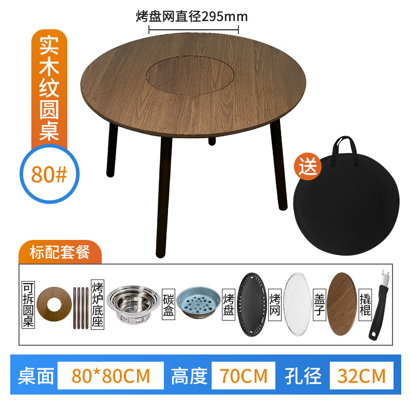 • 원목판 나뭇결 80*80*70 원형 테이블(베이킹 그릴 + 베이킹 팬 전체 세트 포함)