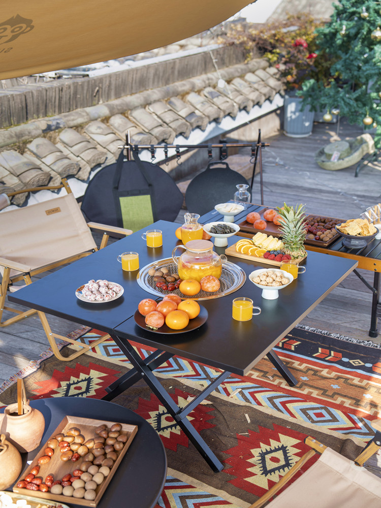• [접이식] 원목 사각 테이블, 검정색 다리 80*80*55 (바비큐 그릴 전체 세트 + 베이킹 팬 + 테이블 커버 포함)