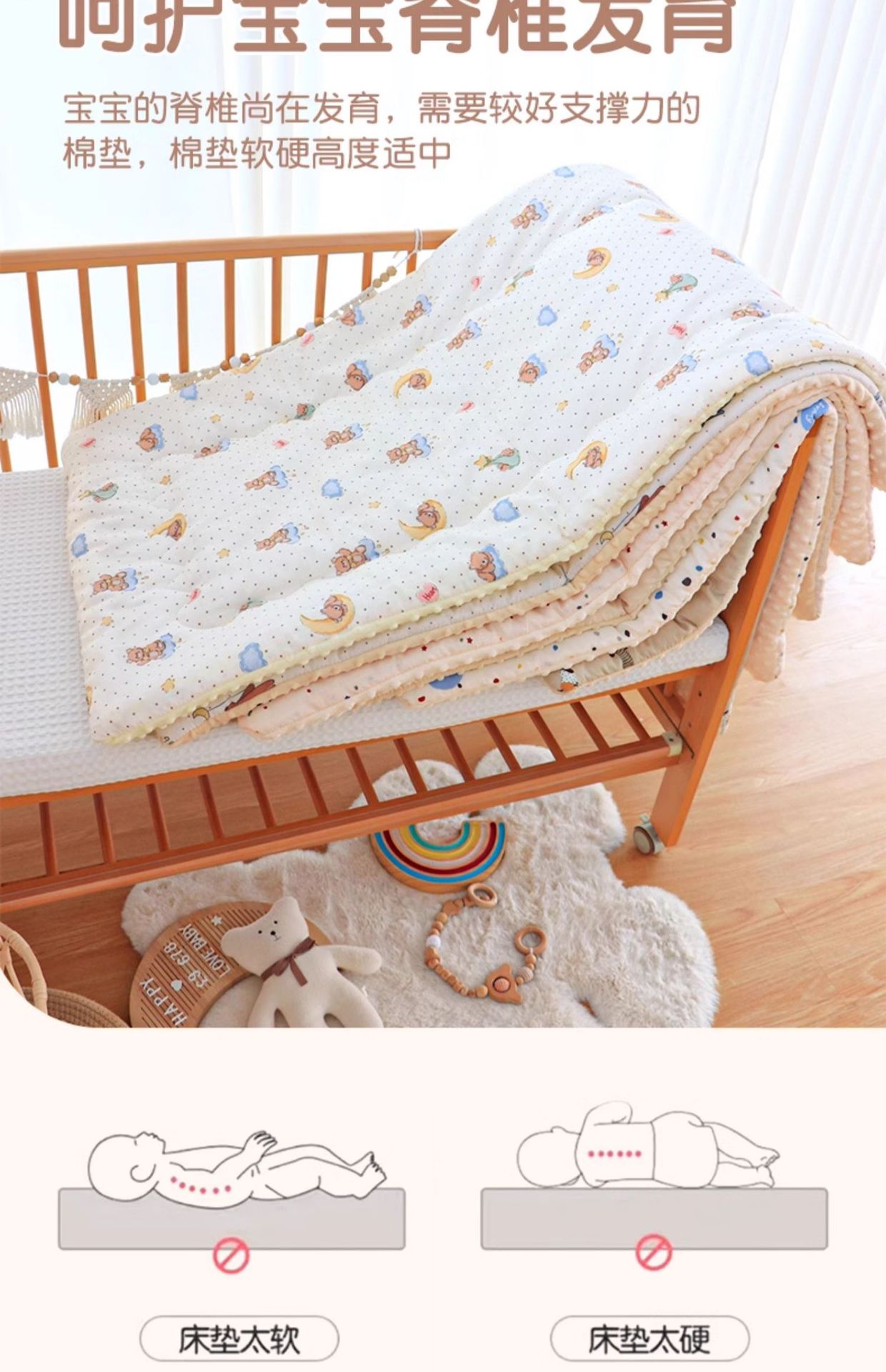 신생아 아기 침대 매트리스 순수한면 세척 가능한 낮잠 매트 유치원 어린이 두꺼운 매트리스 아기의 작은 침구