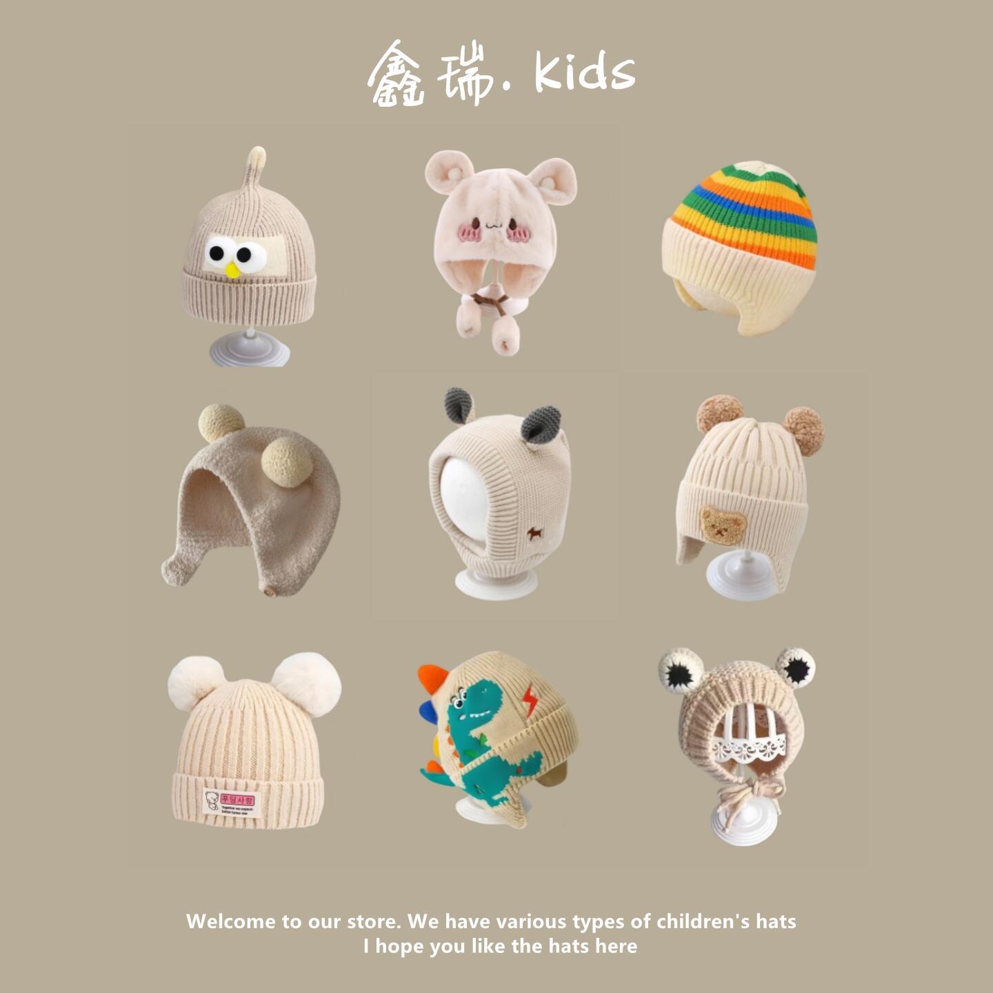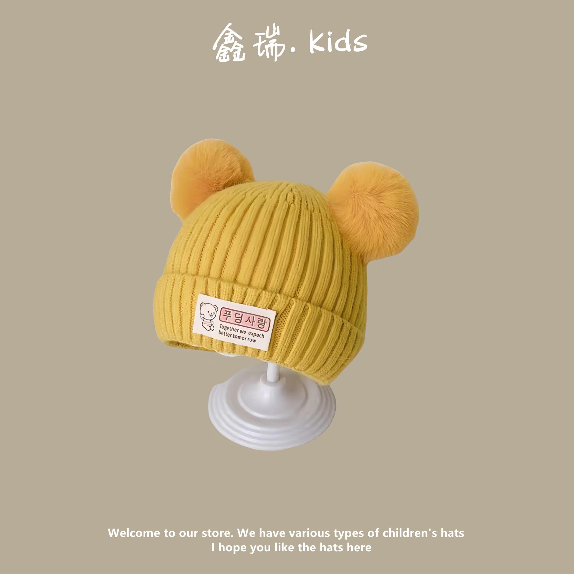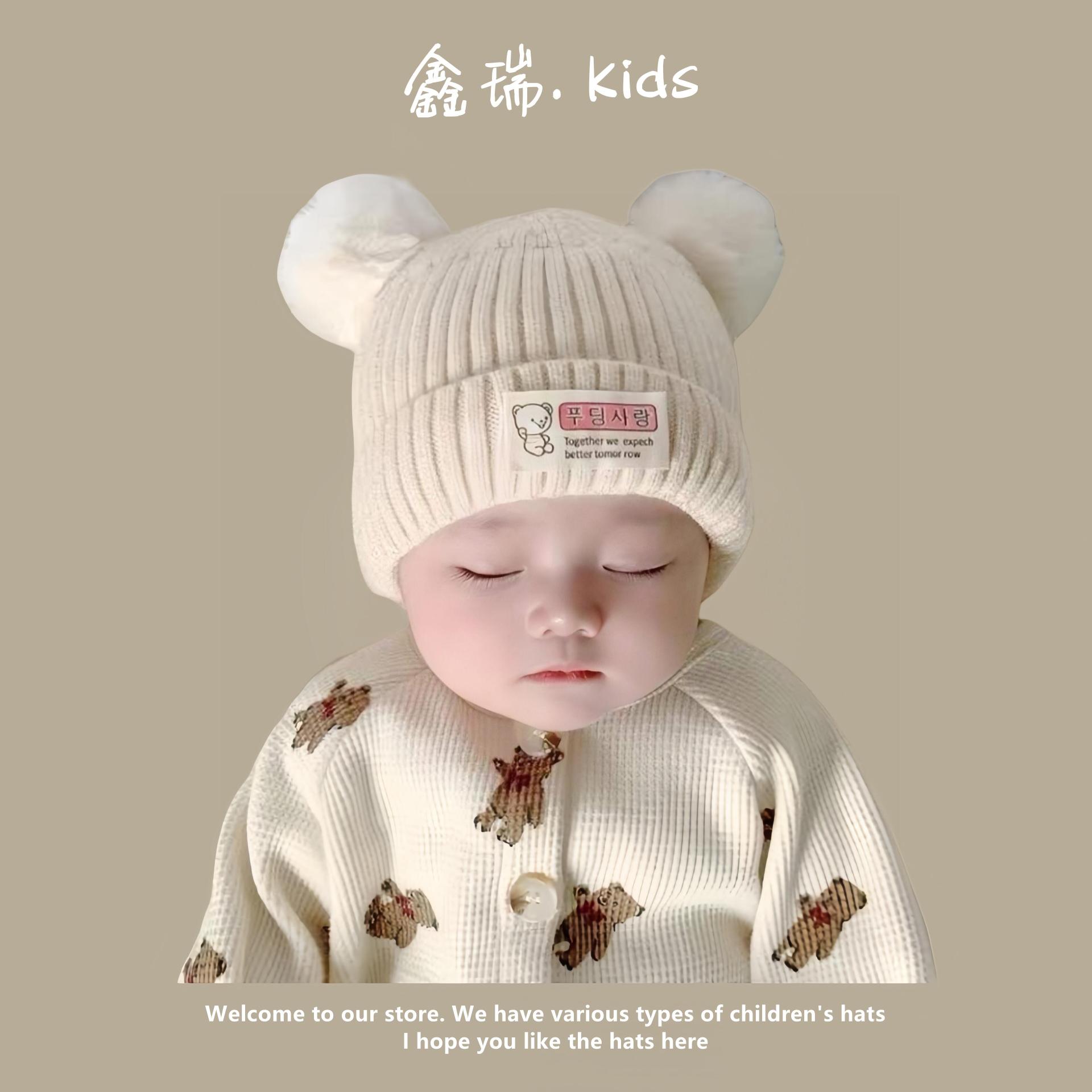 가을 겨울 어린이 모자, 따뜻한 유아용 플러시 니트 모자, 남아 여아용 한국 스타일 아기 풀오버 귀 보호 방한 모자스토어 가기