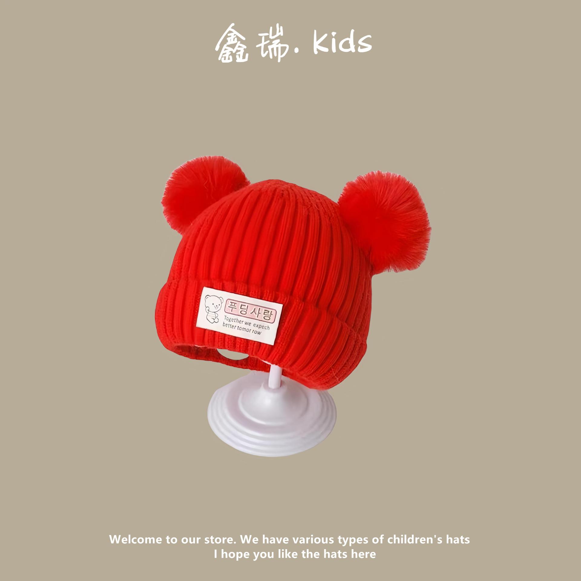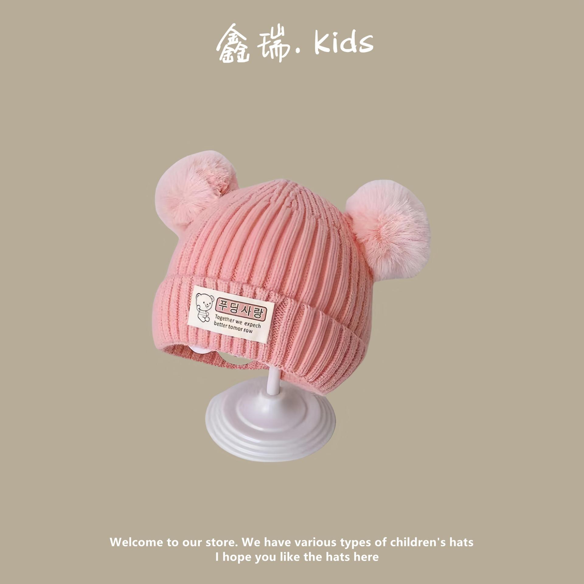 가을 겨울 어린이 모자, 따뜻한 유아용 플러시 니트 모자, 남아 여아용 한국 스타일 아기 풀오버 귀 보호 방한 모자