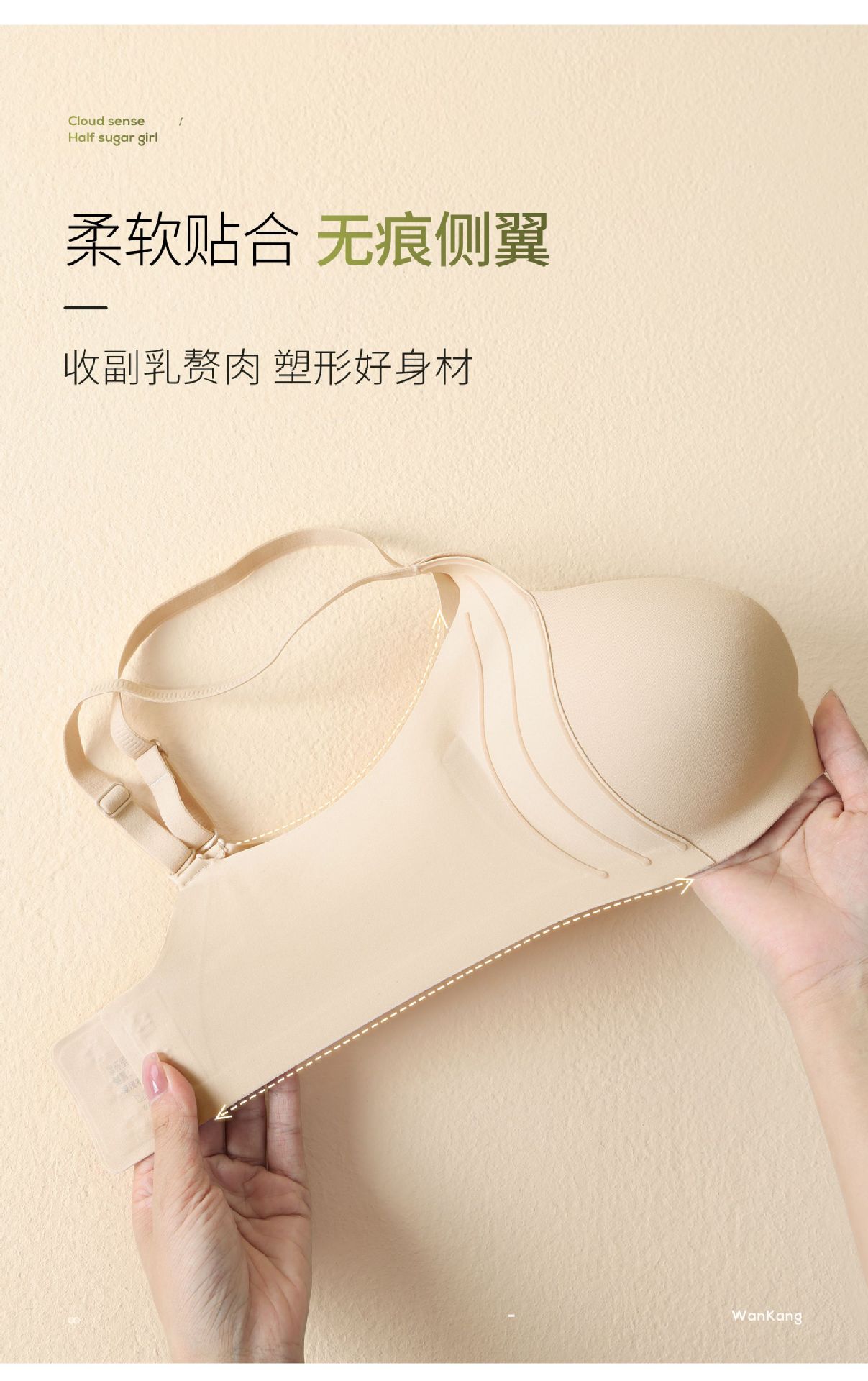 [맞춤형 가공] 작은 가슴을 가진 여성을 위한 심리스 누드 속옷, 푸쉬업 및 확대, 조절 가능한 고정 컵 푸시업 브라