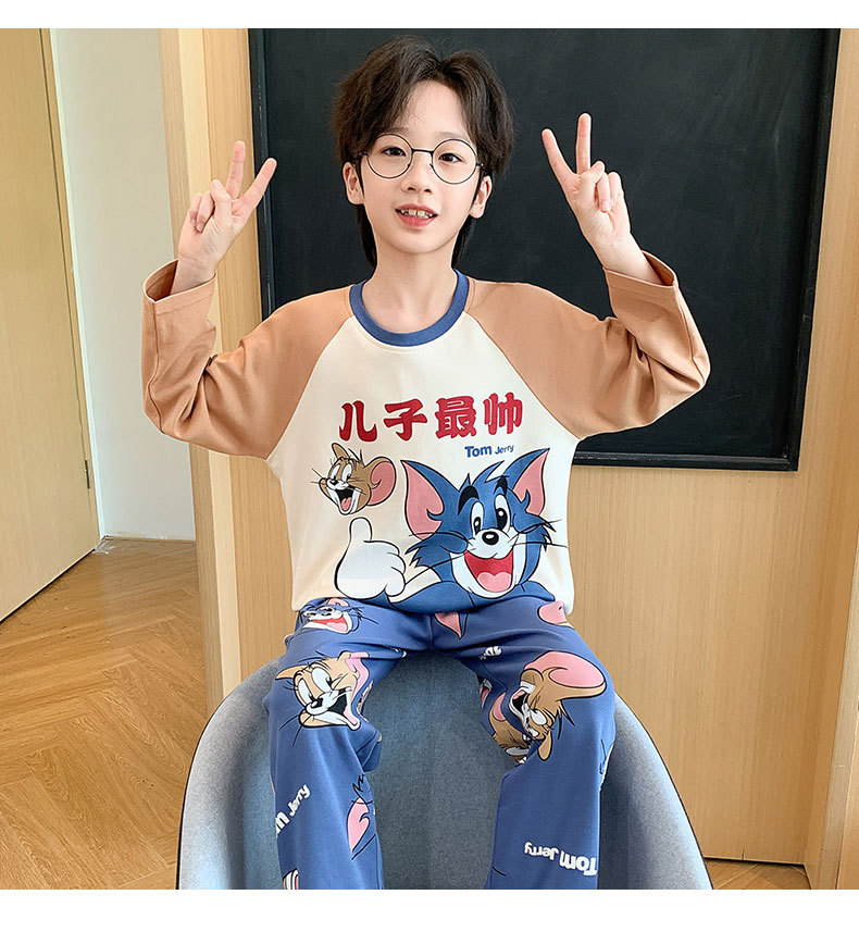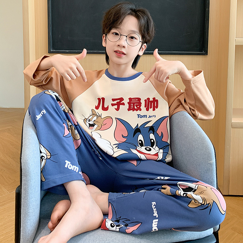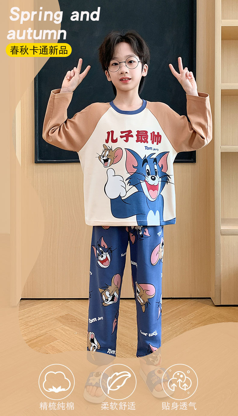새로운 소년 잠옷 봄과 가을 순면 긴 소매 소년 만화 세트 어린이 순면 홈 의류 여름