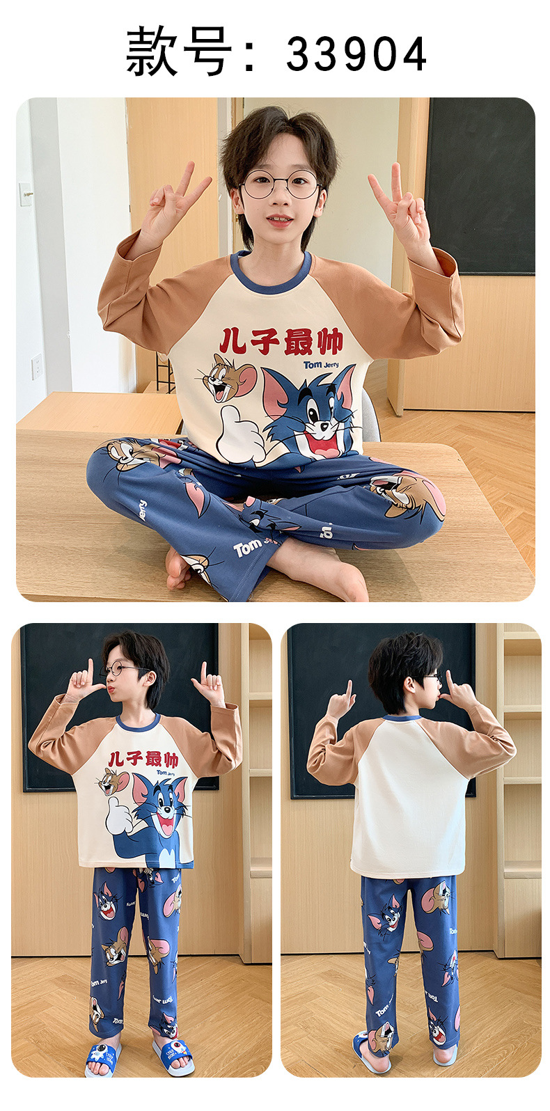 새로운 소년 잠옷 봄과 가을 순면 긴 소매 소년 만화 세트 어린이 순면 홈 의류 여름스토어 가기