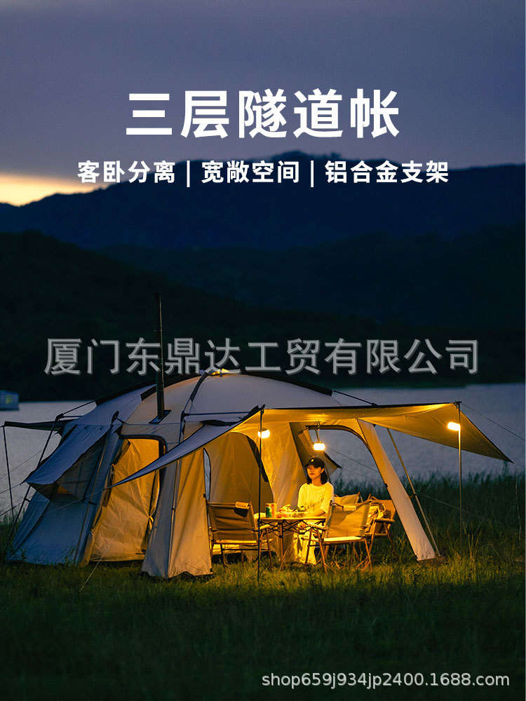 원룸 원홀 터널 텐트 야외 캠핑 캠핑 하룻밤 휴대용 접는 더블 레이어 두꺼운 폭풍우 텐트스토어 가기