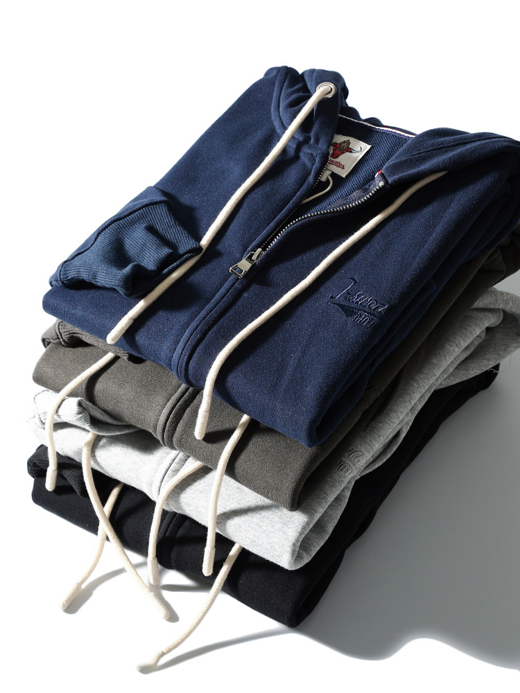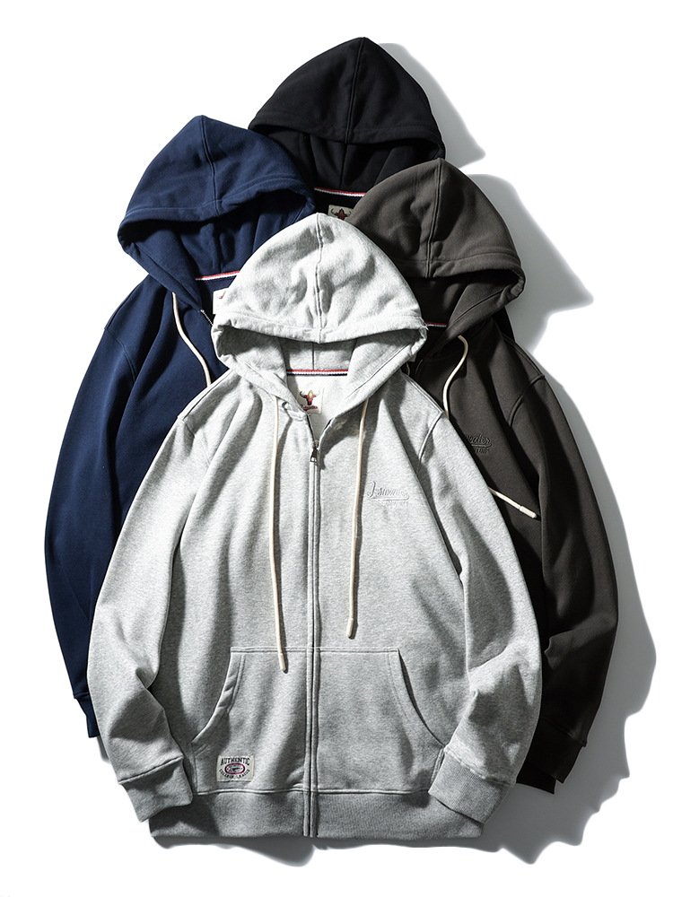 320克重磅毛圈棉 抗起球不变型 美式休闲纯色连帽开衫卫衣男外套