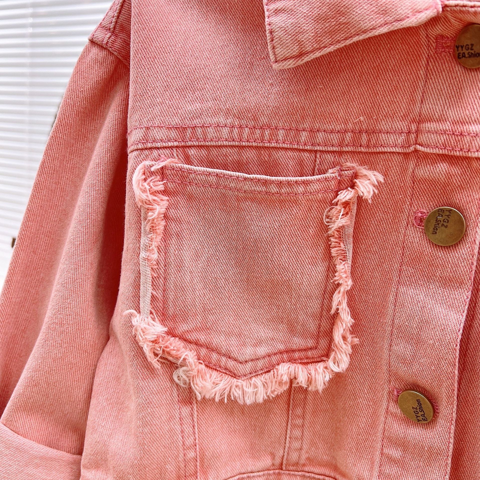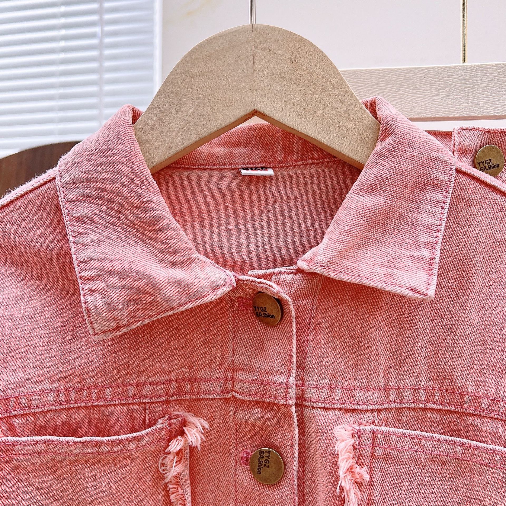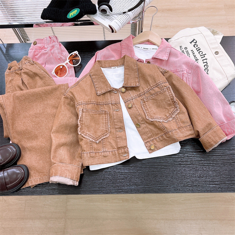 어린이 의류 도매 소녀 세트 봄과 가을 새로운 어린이 큰 어린이 세련된 데님 코트와 넓은 다리 바지 투피스 세트
