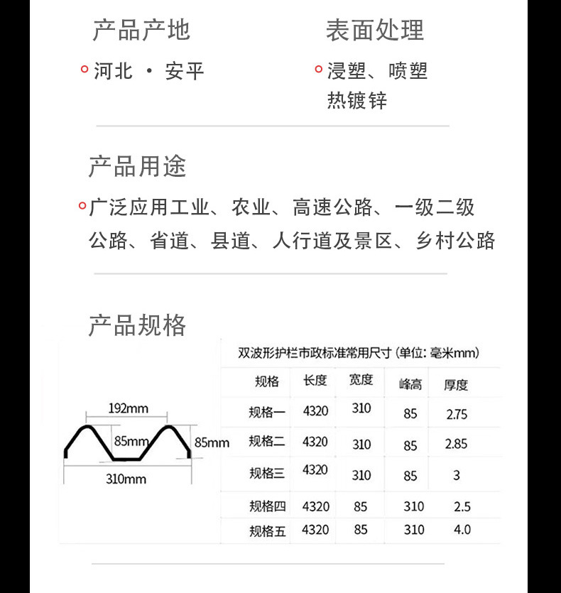 고속도로 웨이브 가드레일 패널 제조업체, 용융 아연 도금 도로 가드레일, 시골 도로 충돌 방지 교통 안전 격리 가드레일