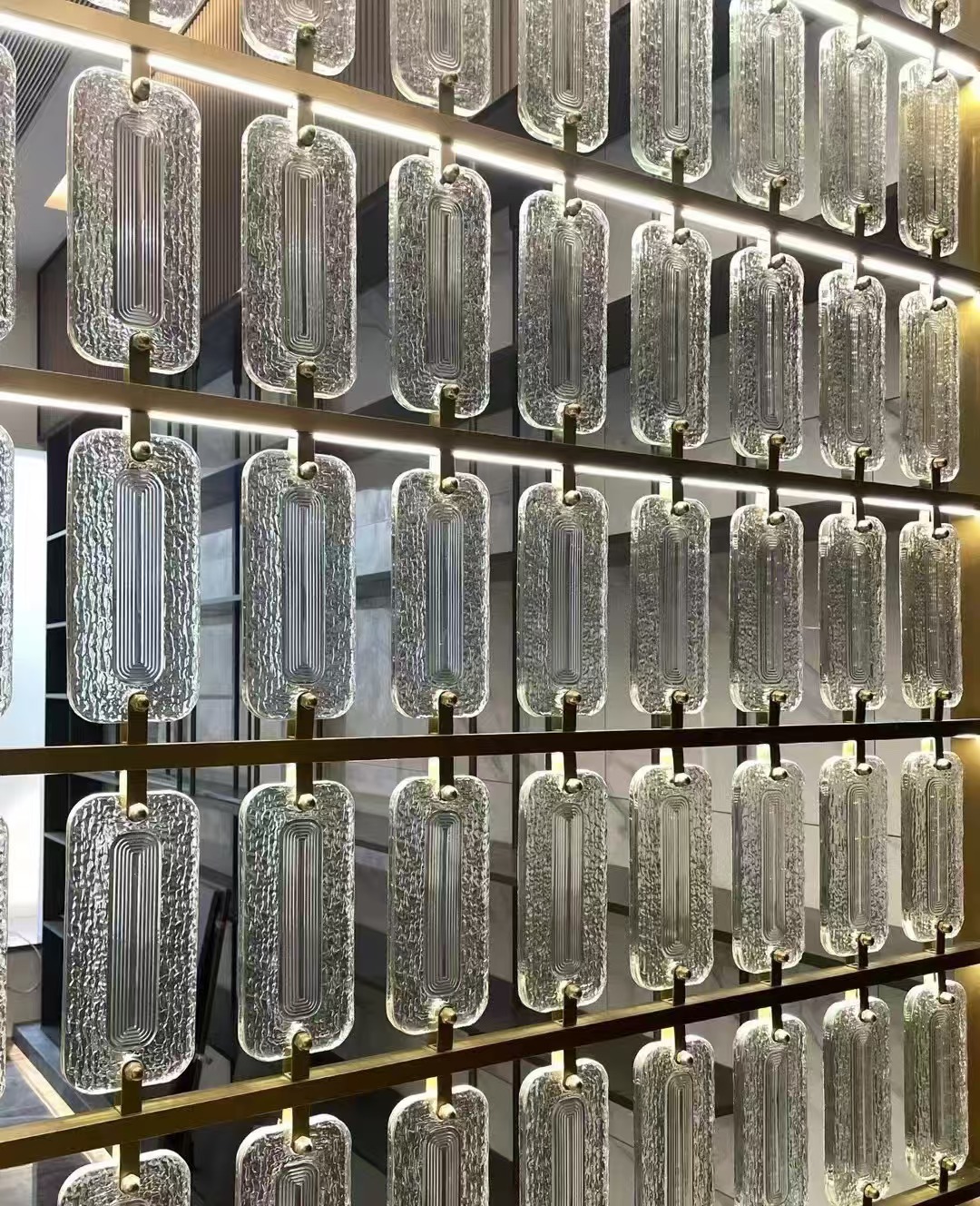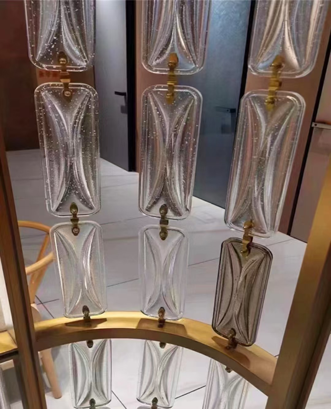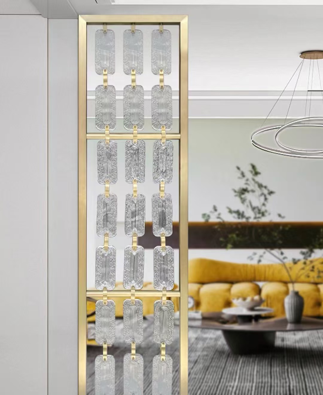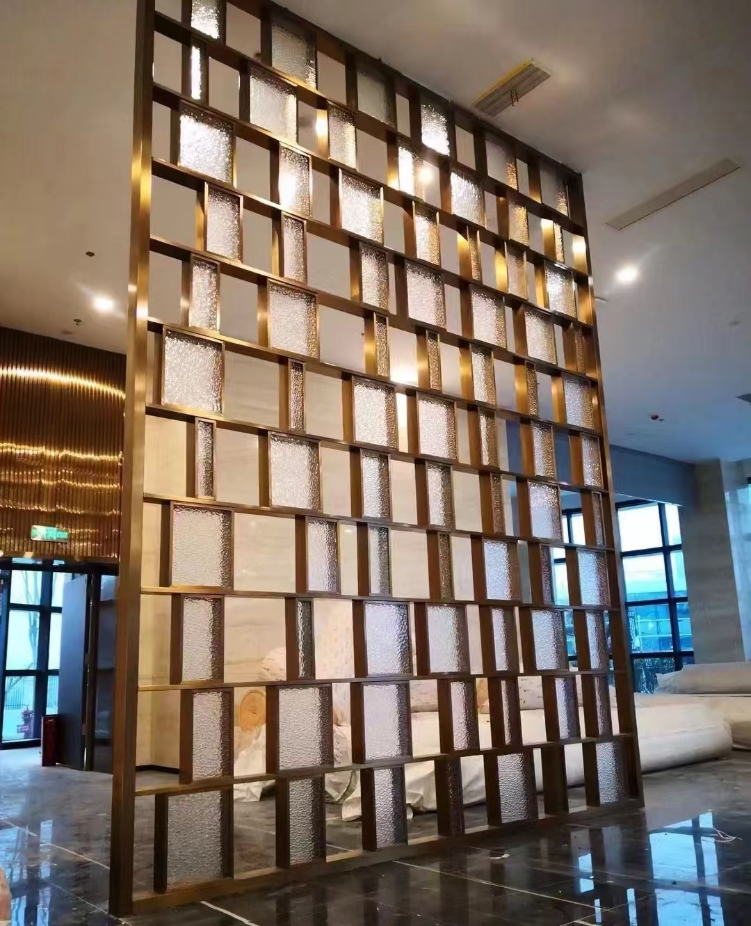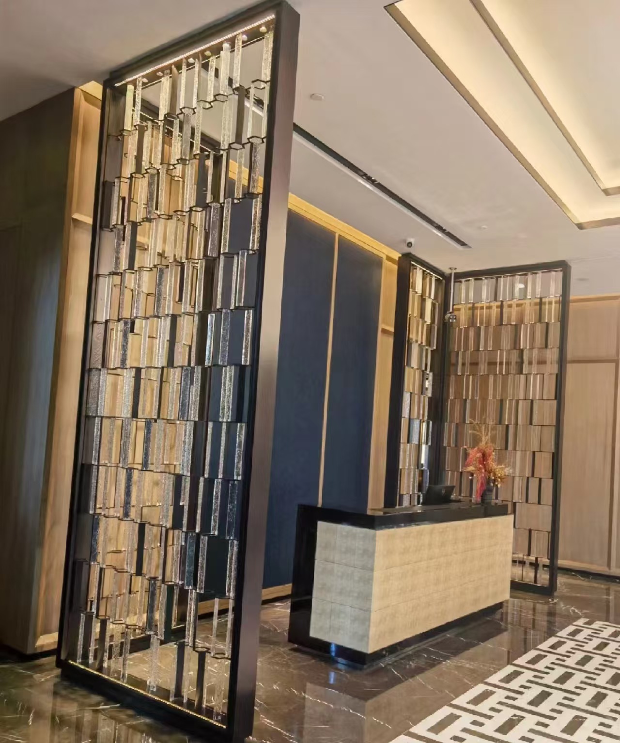 호텔 클럽 스테인레스 스틸 유리 교수형 크리스탈 스크린 입구 현관 거실 파티션 레스토랑 프로젝트 장식스토어 가기