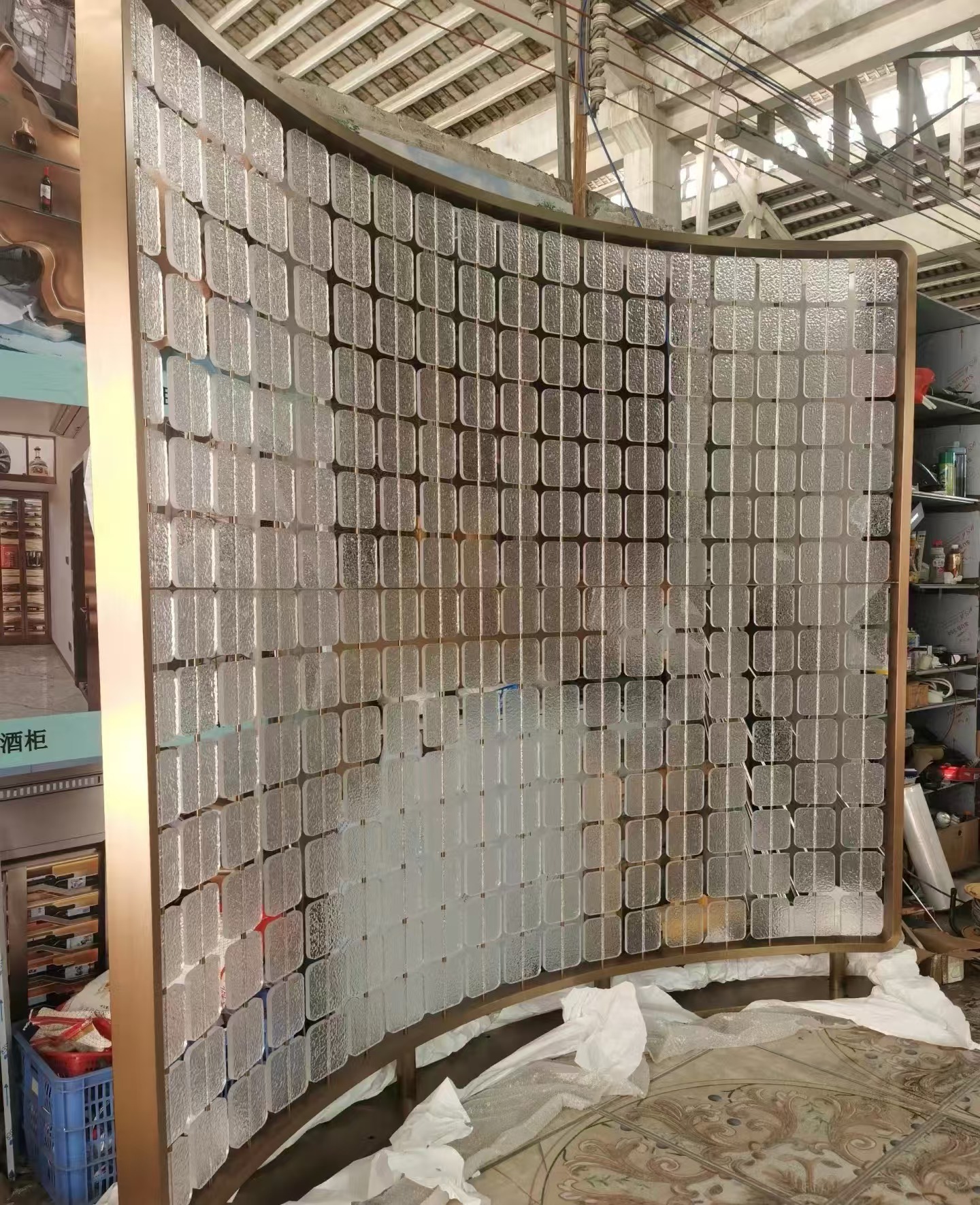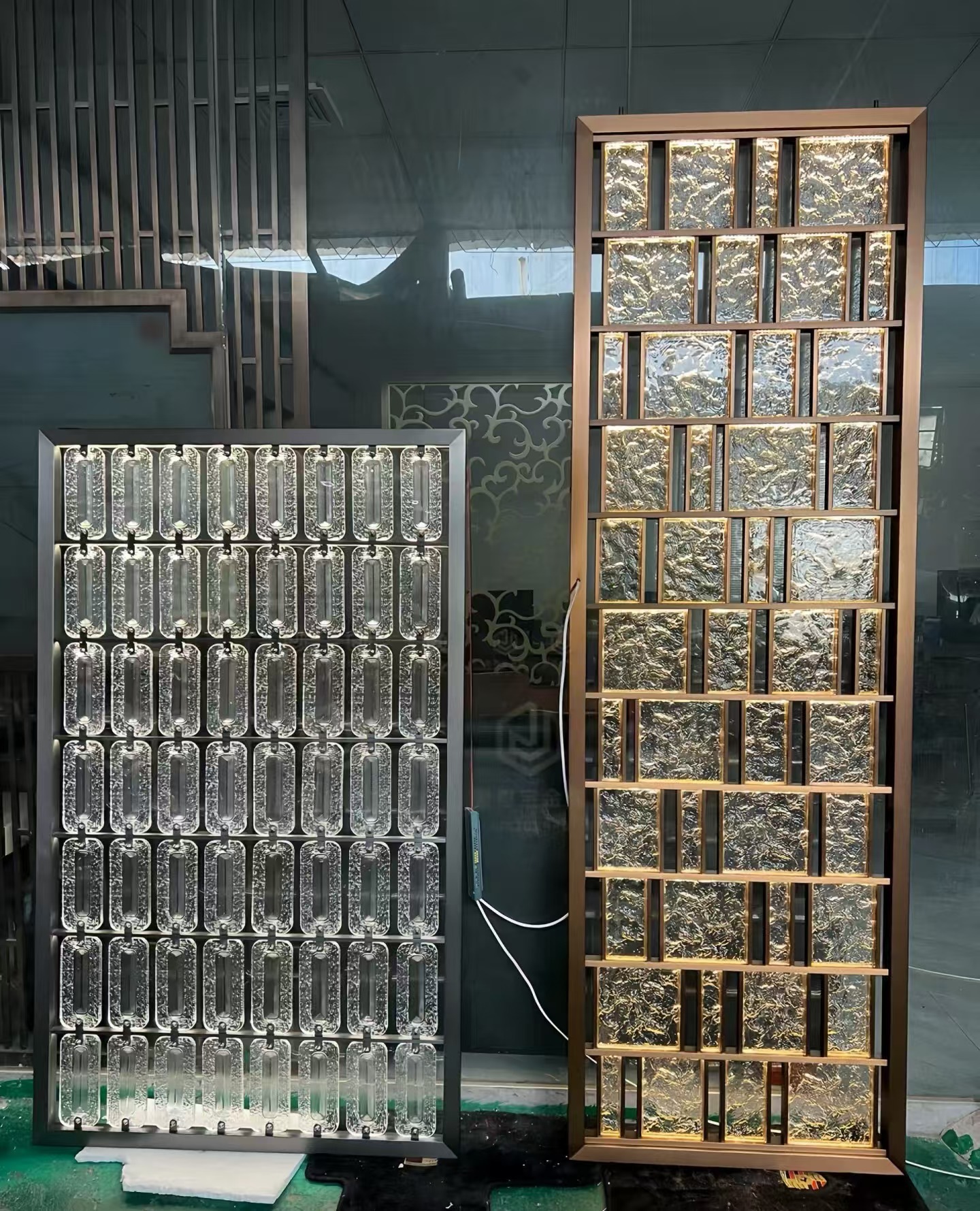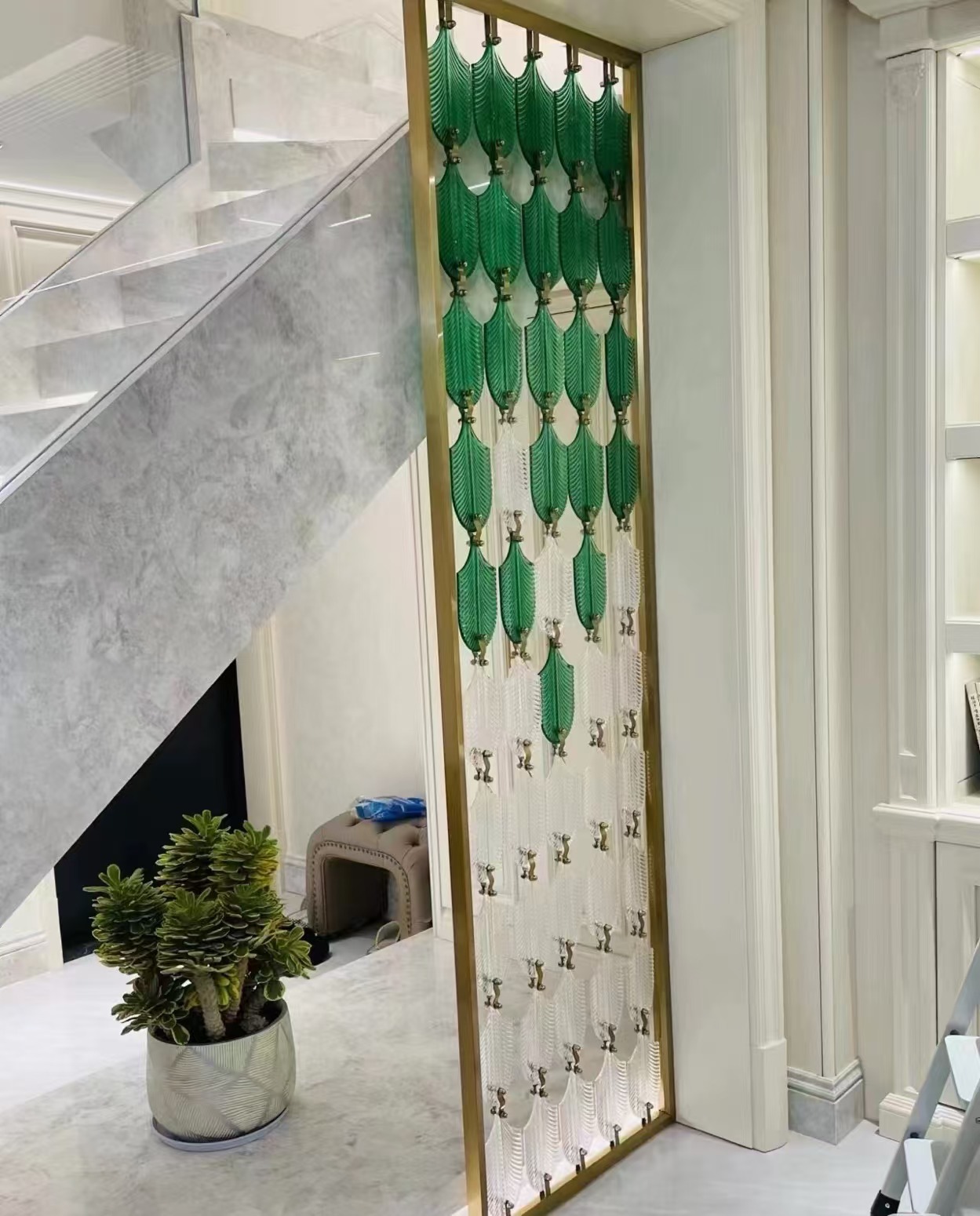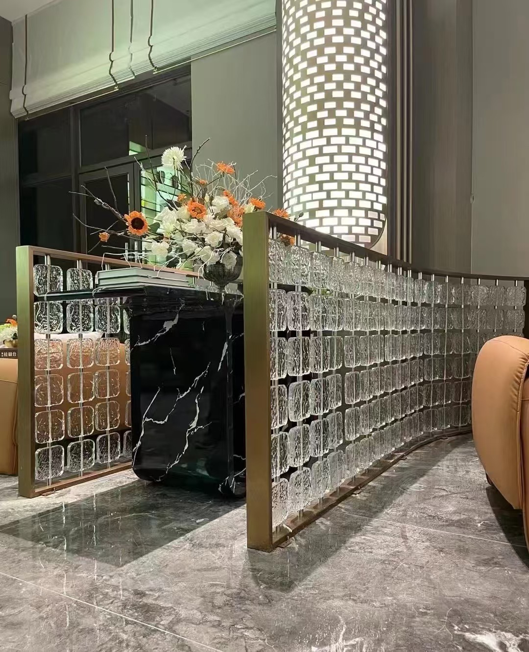 호텔 클럽 스테인레스 스틸 유리 교수형 크리스탈 스크린 입구 현관 거실 파티션 레스토랑 프로젝트 장식스토어 가기