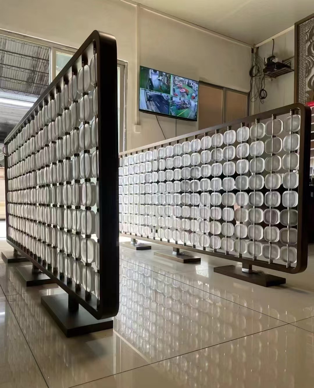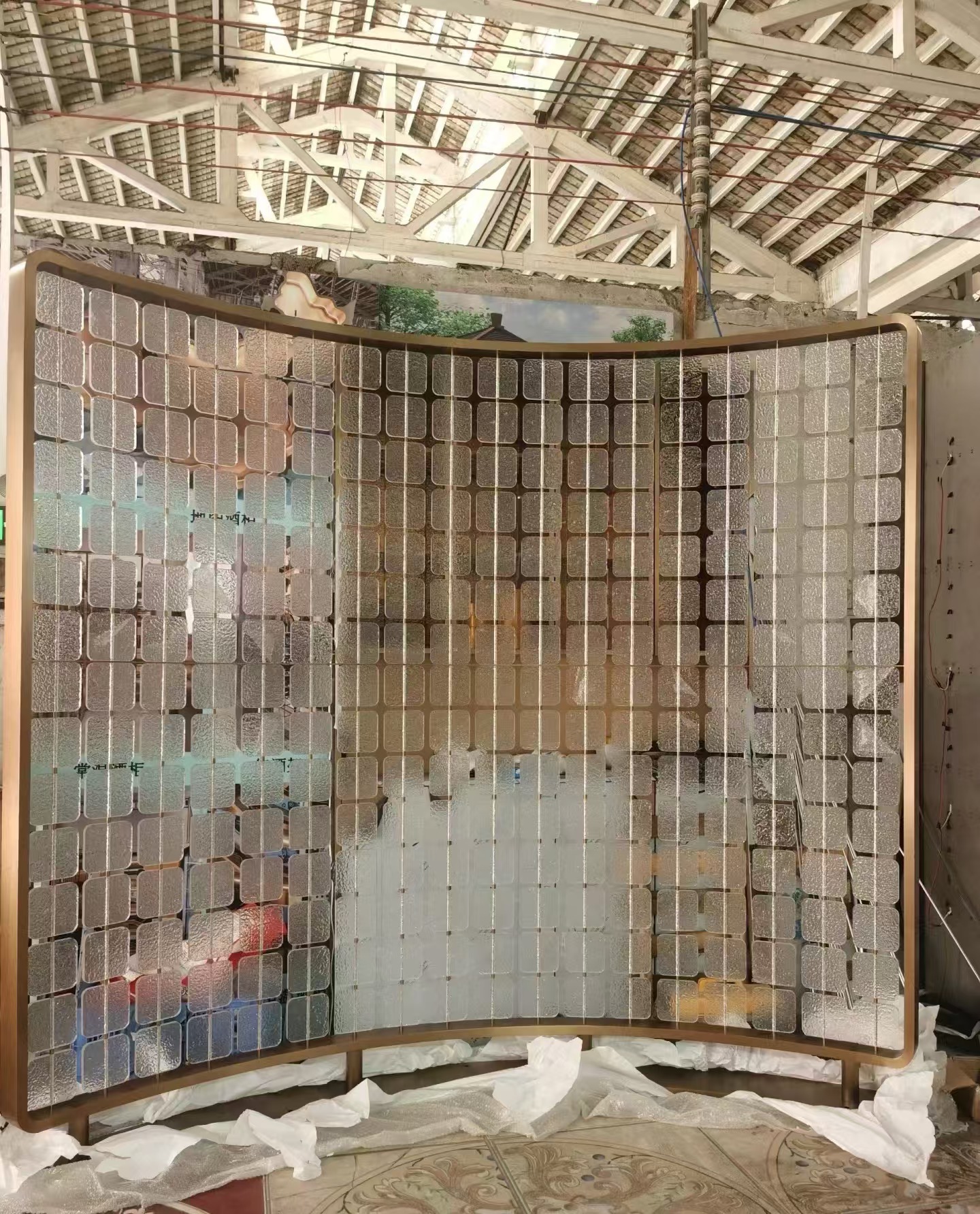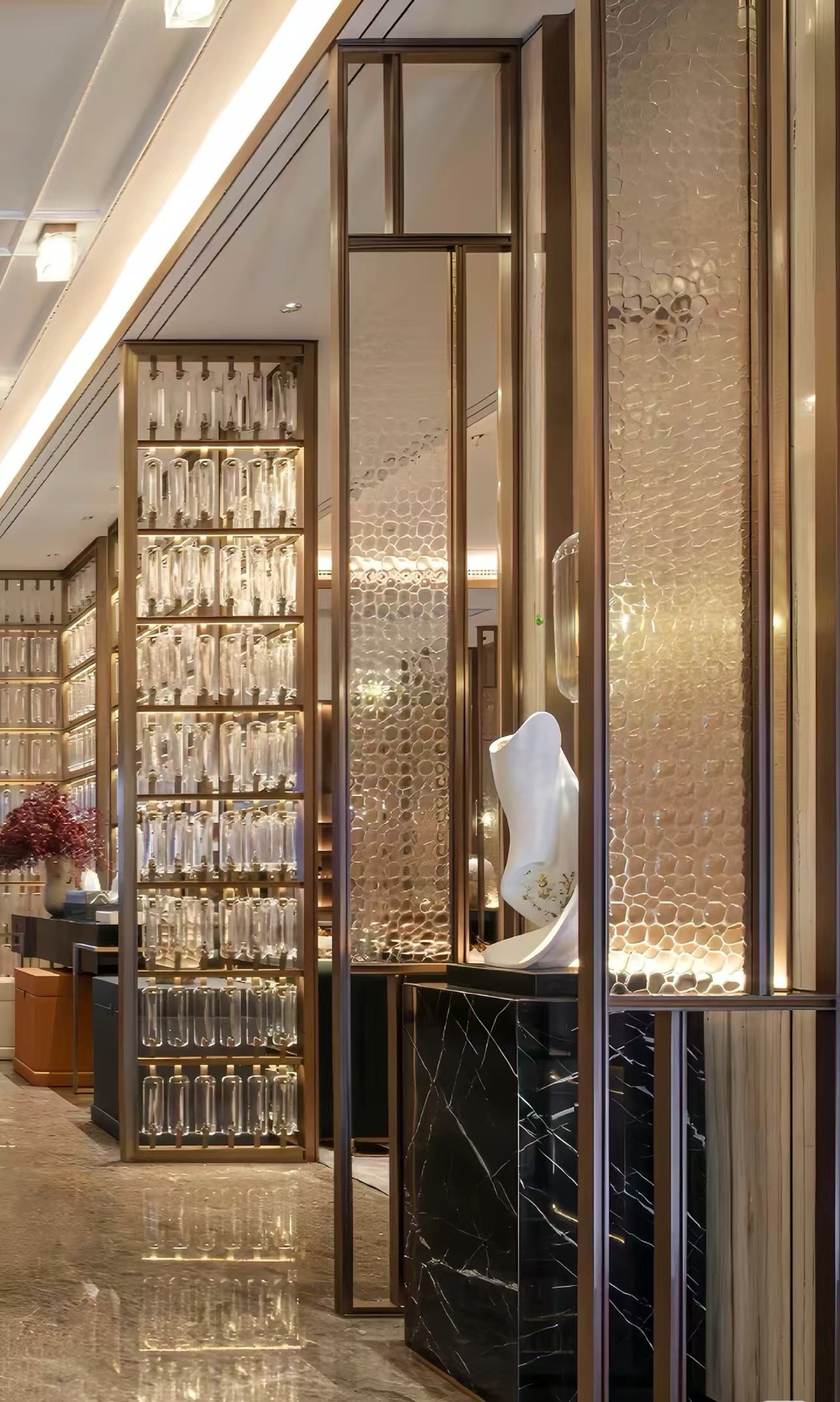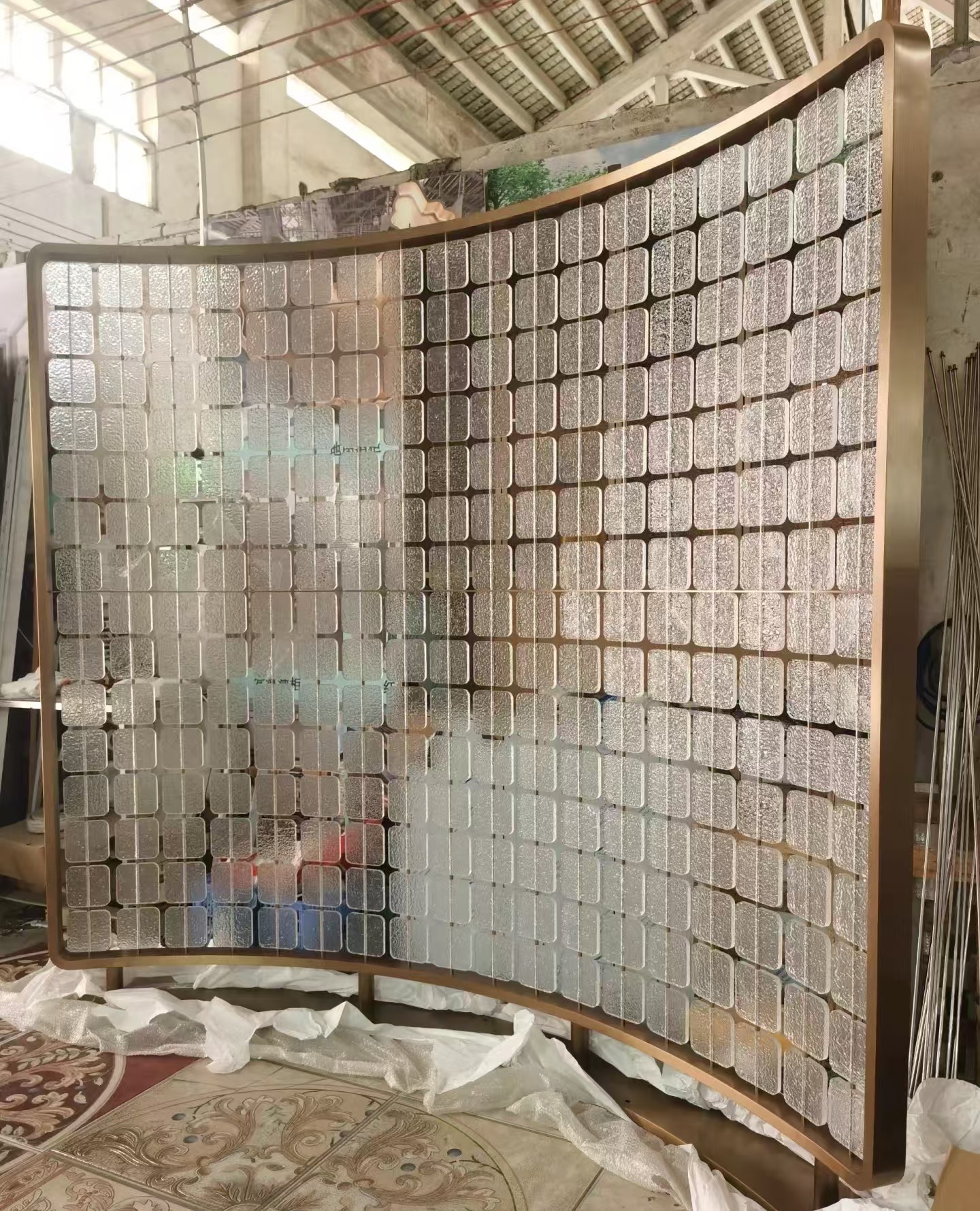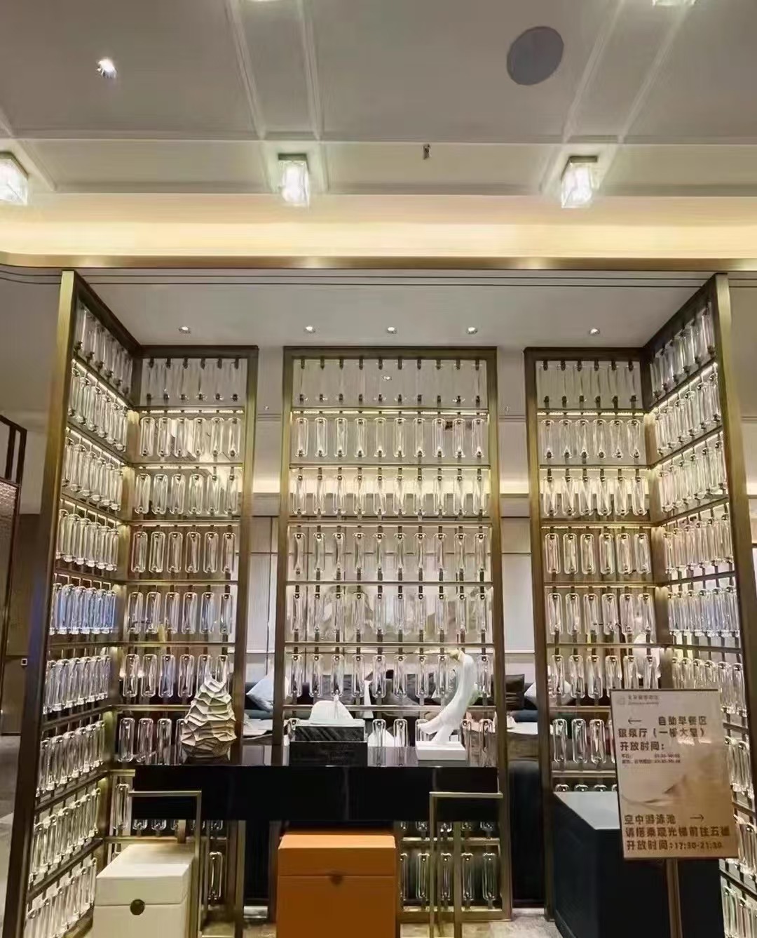 호텔 클럽 스테인레스 스틸 유리 교수형 크리스탈 스크린 입구 현관 거실 파티션 레스토랑 프로젝트 장식스토어 가기