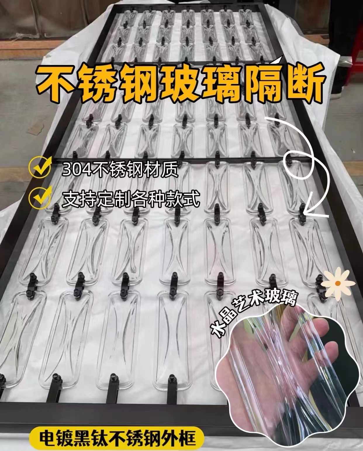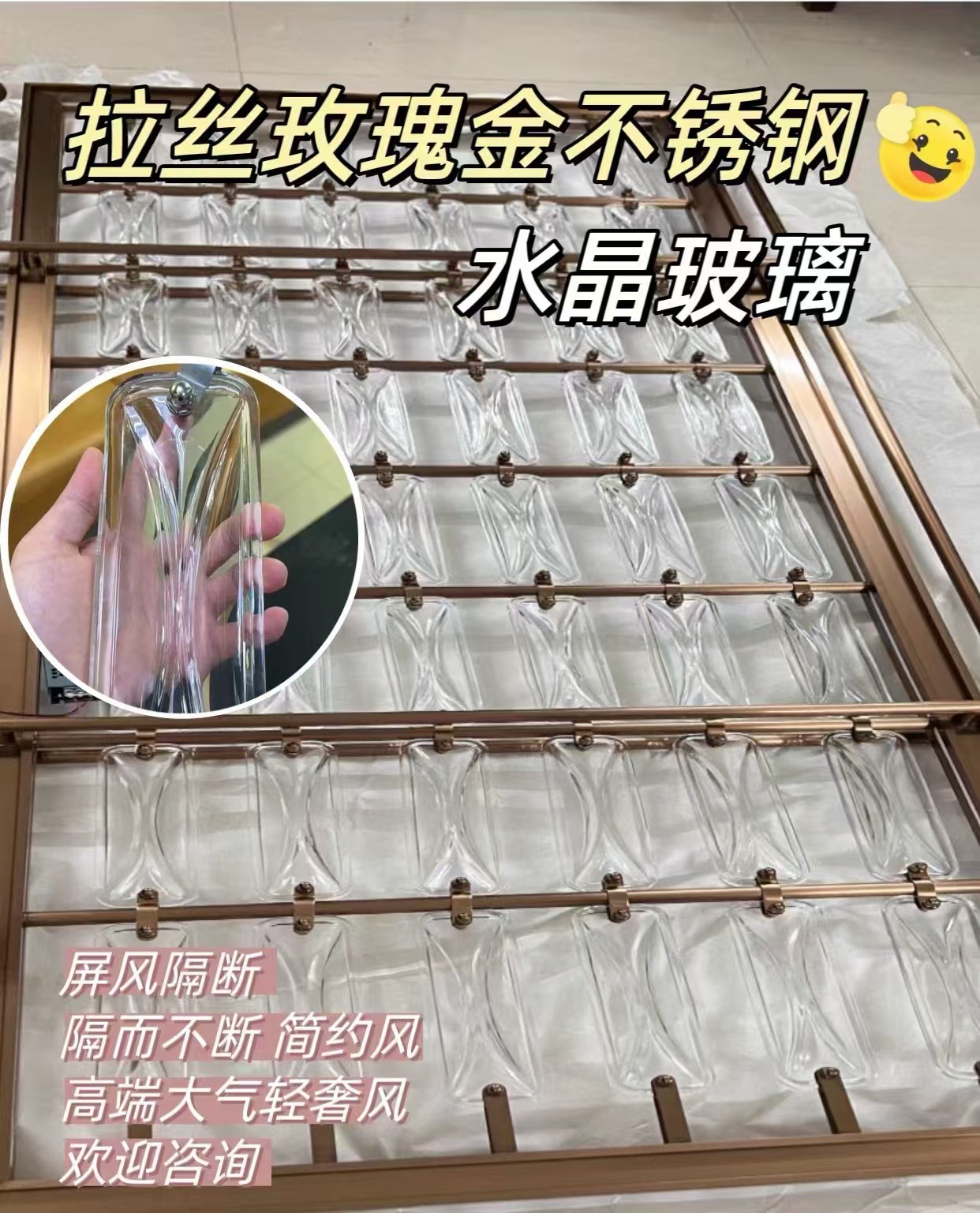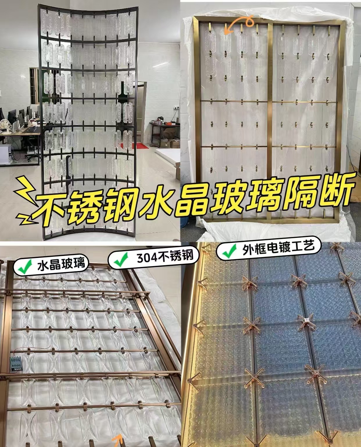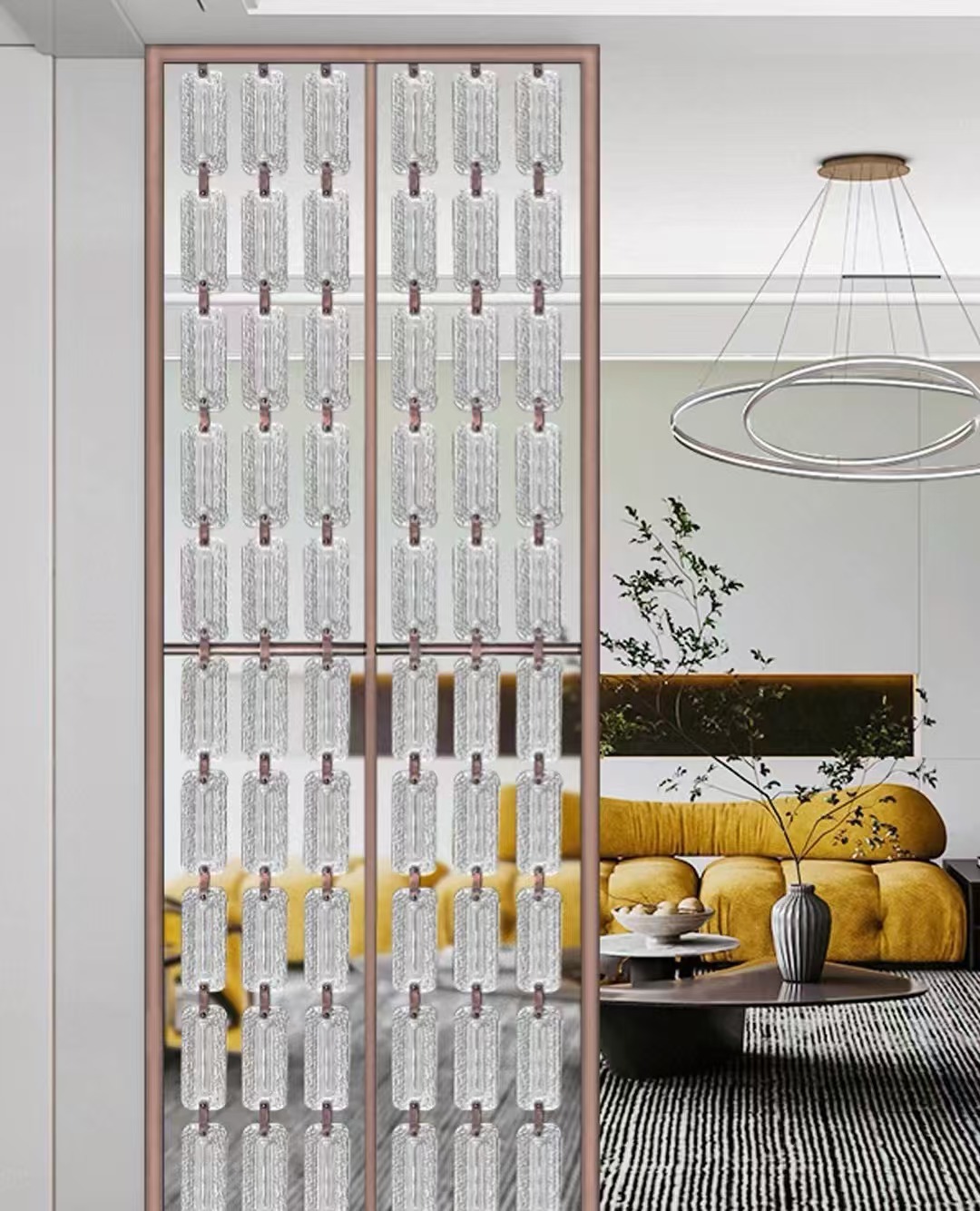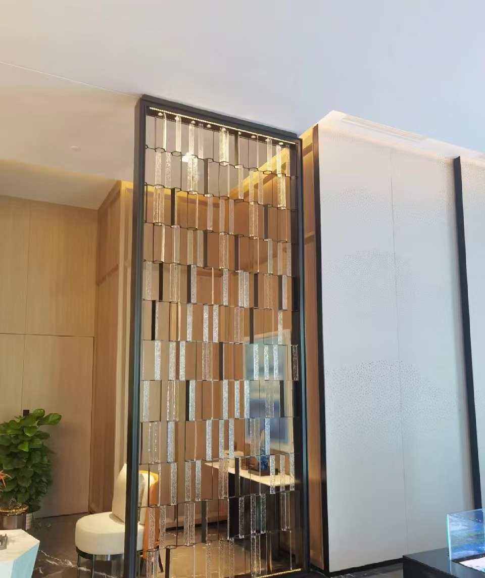 호텔 클럽 스테인레스 스틸 유리 교수형 크리스탈 스크린 입구 현관 거실 파티션 레스토랑 프로젝트 장식