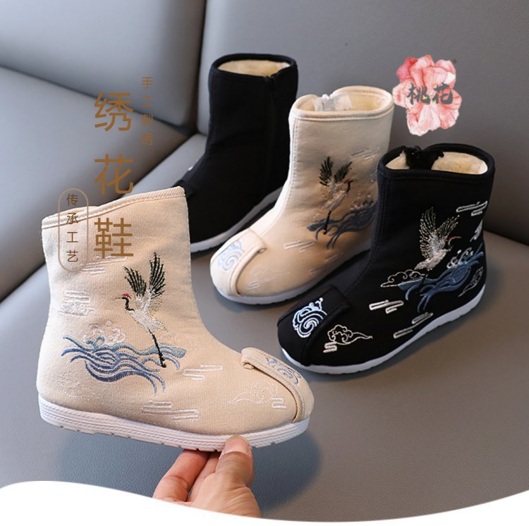 올드 베이징 천 신발 어린이 자수 신발 소년 한푸 신발 부츠 중국 스타일 고대 옷 신년 신발 신발스토어 가기
