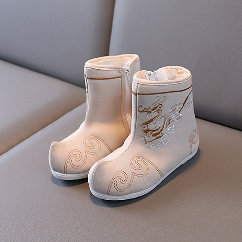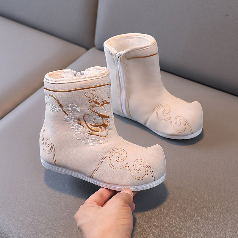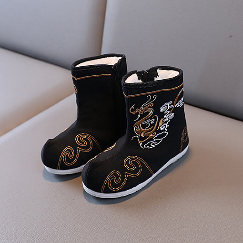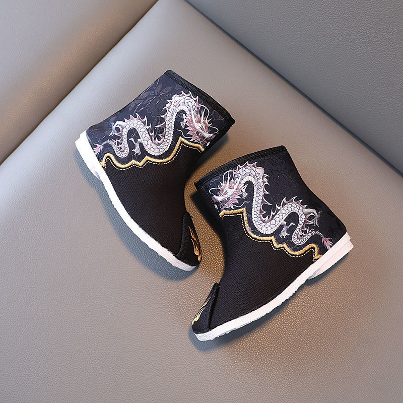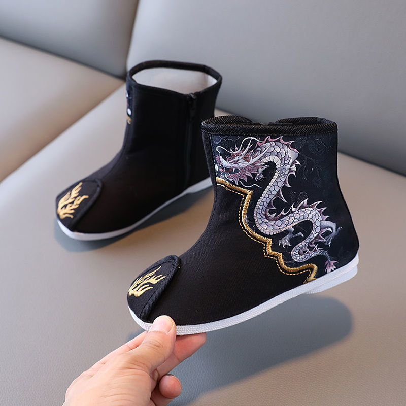 올드 베이징 천 신발 어린이 자수 신발 소년 한푸 신발 부츠 중국 스타일 고대 옷 신년 신발 신발
