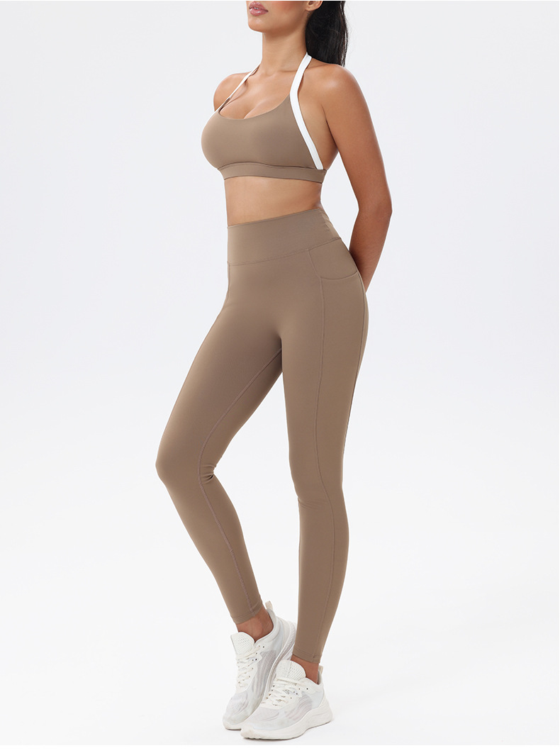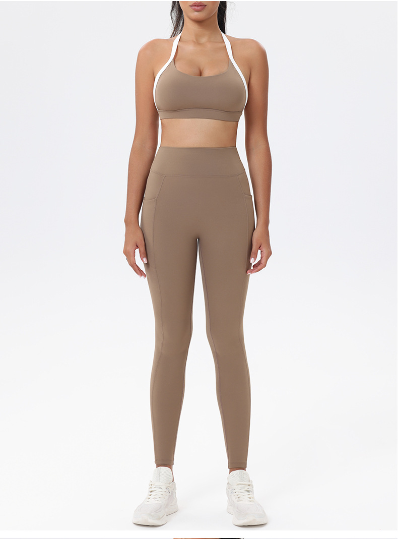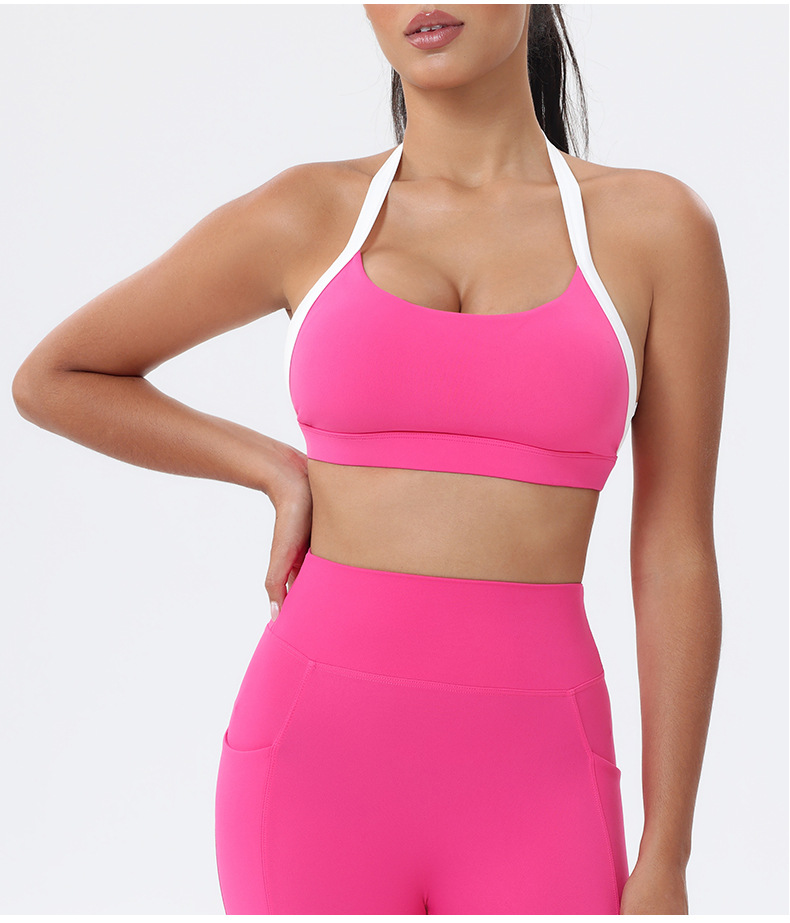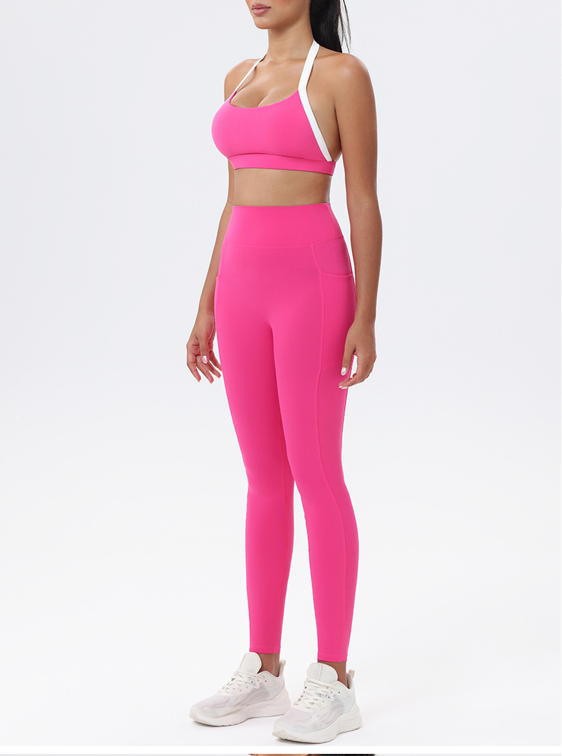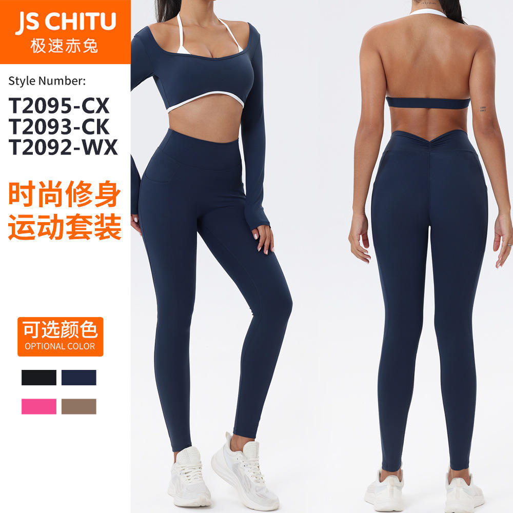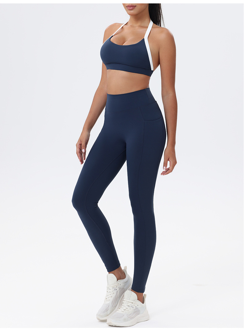 유럽과 미국의 콘트라스트 컬러 뷰티 백 요가 세트 세트 하이 엔드 올 매치 캐주얼 꽉 맞는 스포츠 피트니스 세트 여성 국경