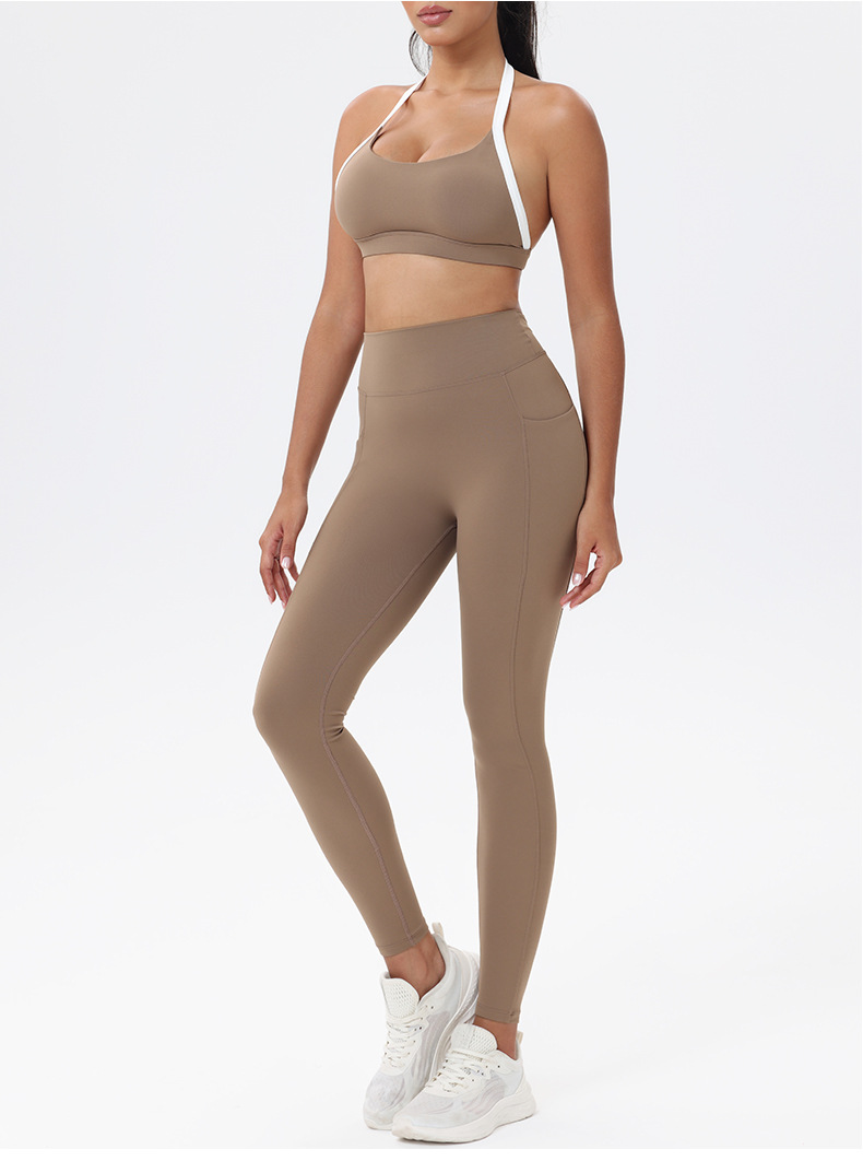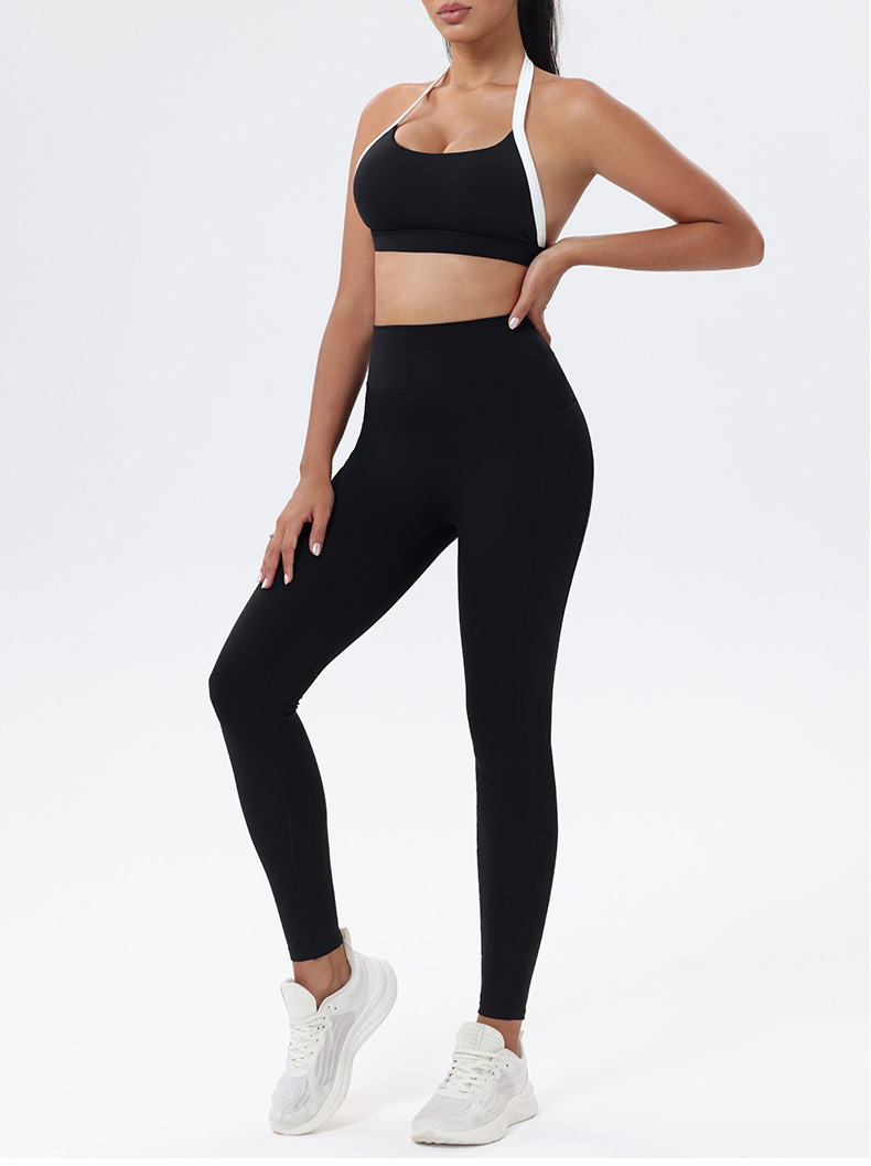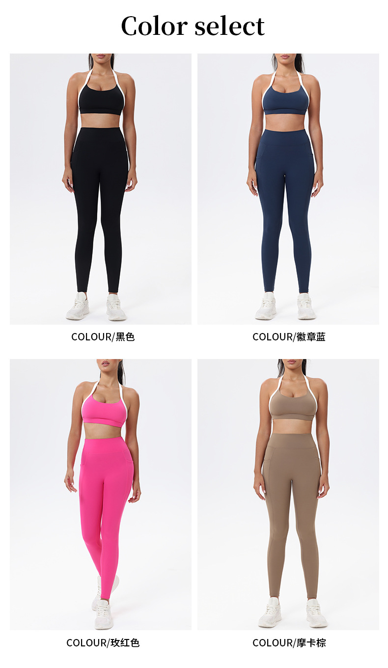 유럽과 미국의 콘트라스트 컬러 뷰티 백 요가 세트 세트 하이 엔드 올 매치 캐주얼 꽉 맞는 스포츠 피트니스 세트 여성 국경스토어 가기