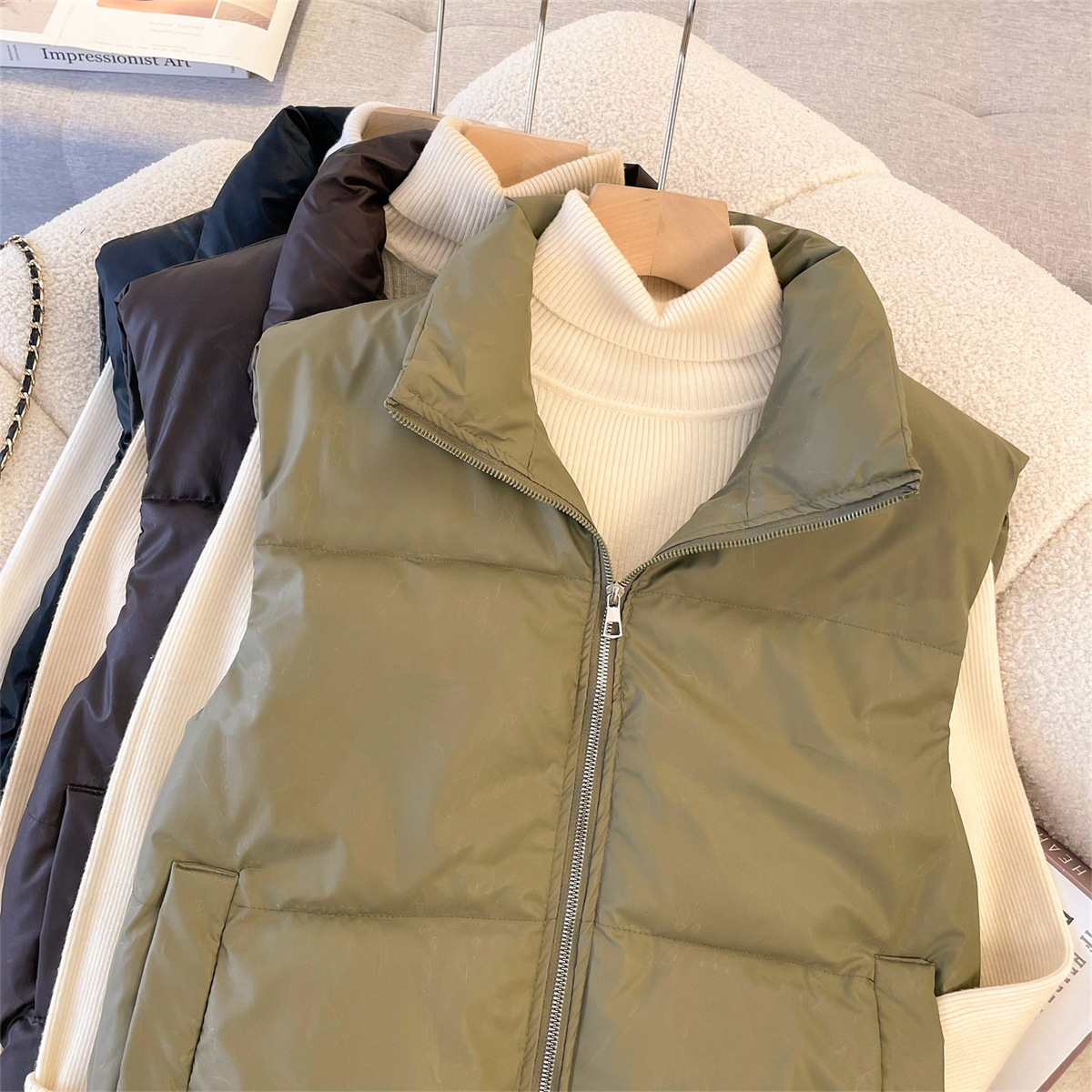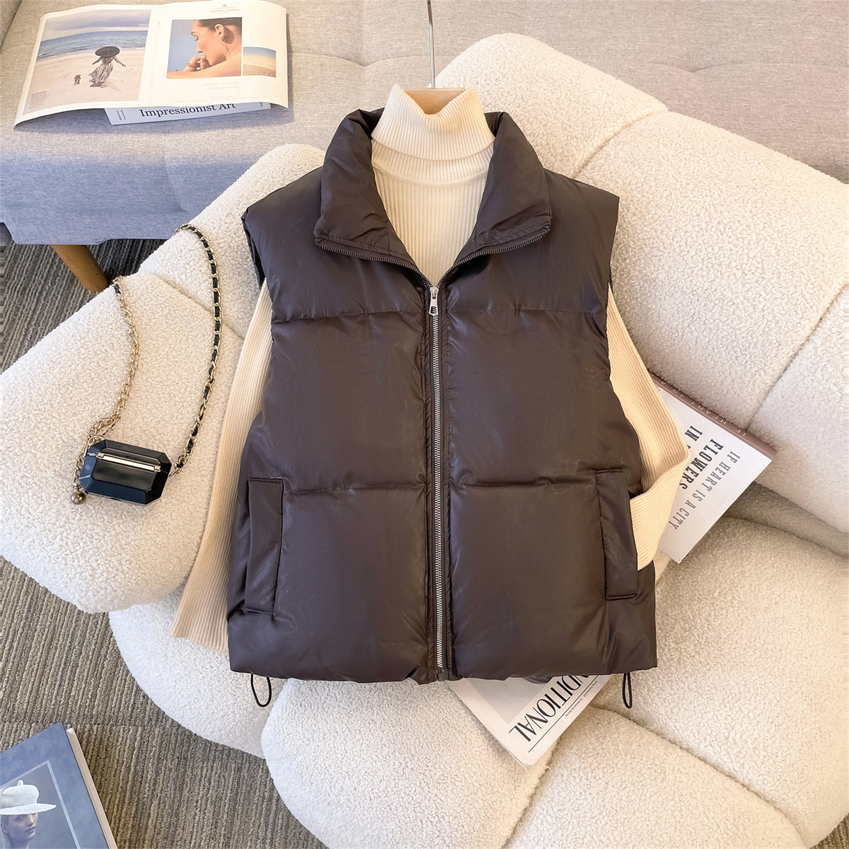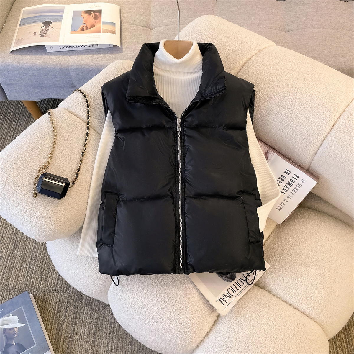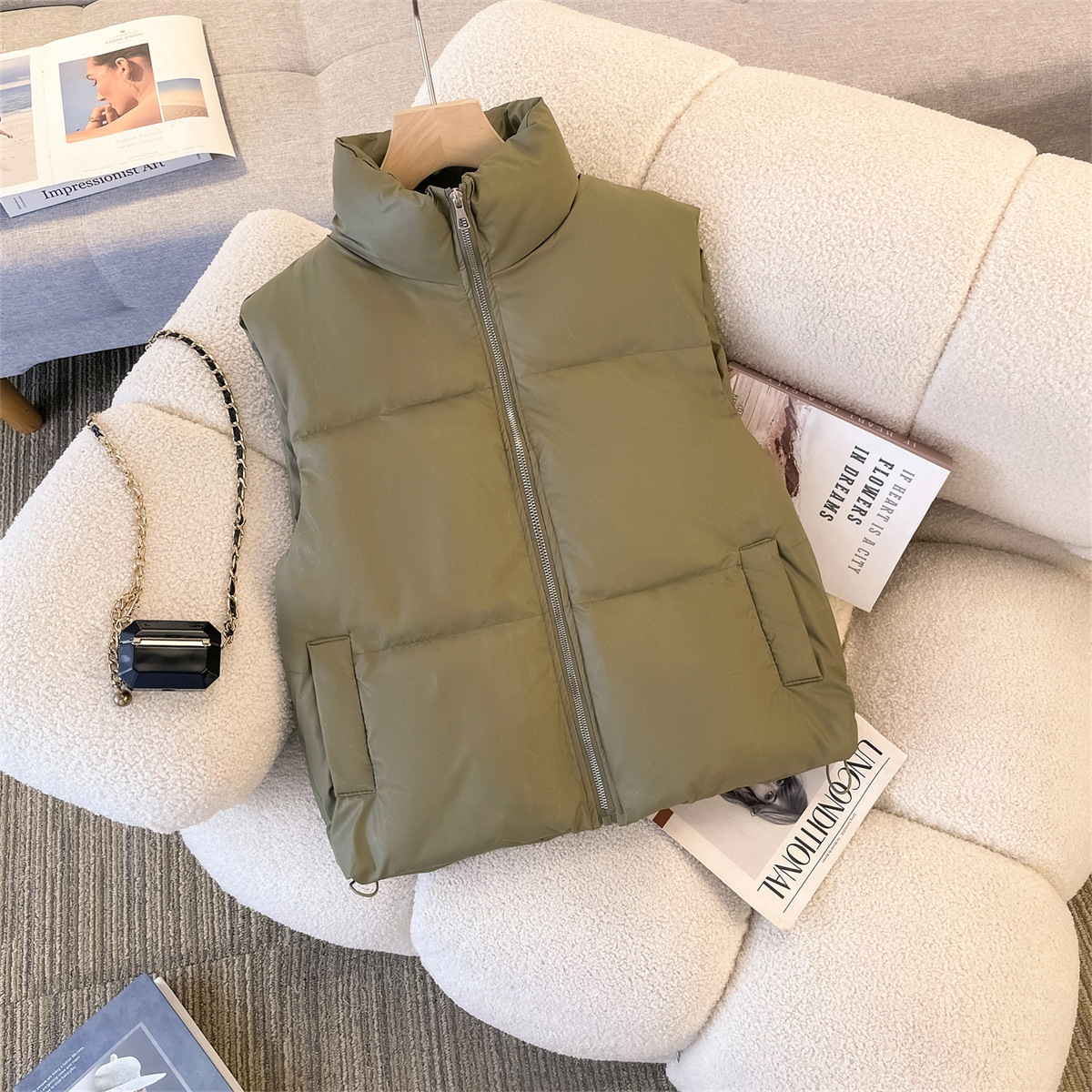 가을과 겨울 새로운 모조 다운 코튼 조끼 여성 아우터웨어 느슨한 캐주얼 올 매치 따뜻한 재킷 남자와 여자의 같은 패션스토어 가기