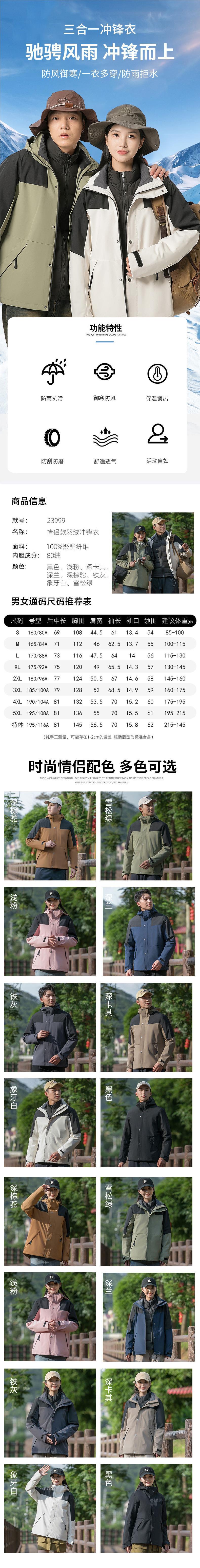 커플의 3 대 1 재킷 남성 야외 티베트 의류 여성 방풍 방수 재킷 이동식 따뜻한 등산 재킷