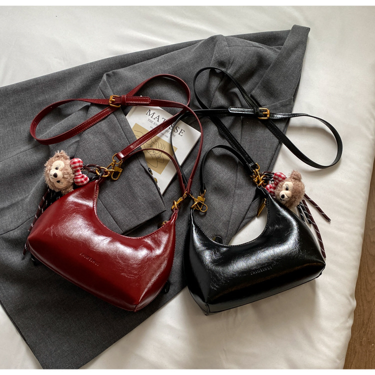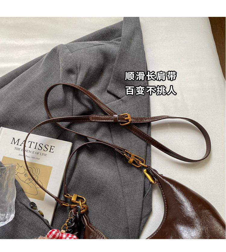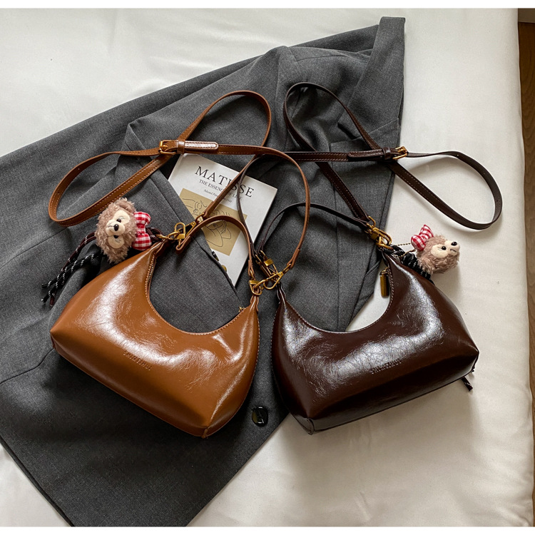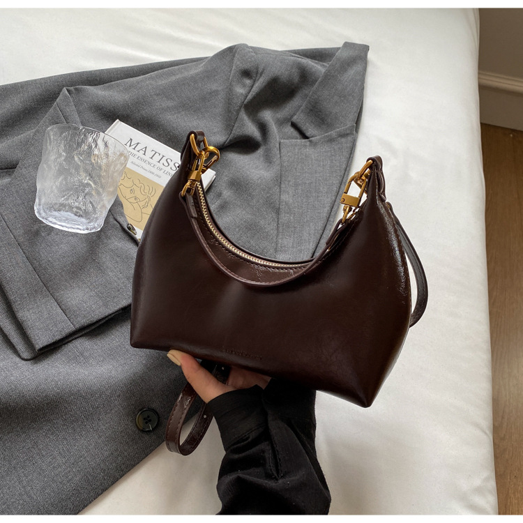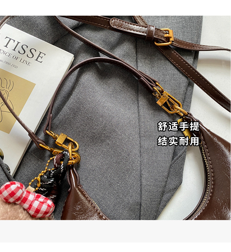 하이 엔드 오일 왁스 가죽 가방 여성의 2024 새로운 패션 올 매치 크로스 바디 백 캐주얼 숄더 언더암 작은 가방스토어 가기