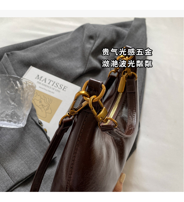하이 엔드 오일 왁스 가죽 가방 여성의 2024 새로운 패션 올 매치 크로스 바디 백 캐주얼 숄더 언더암 작은 가방
