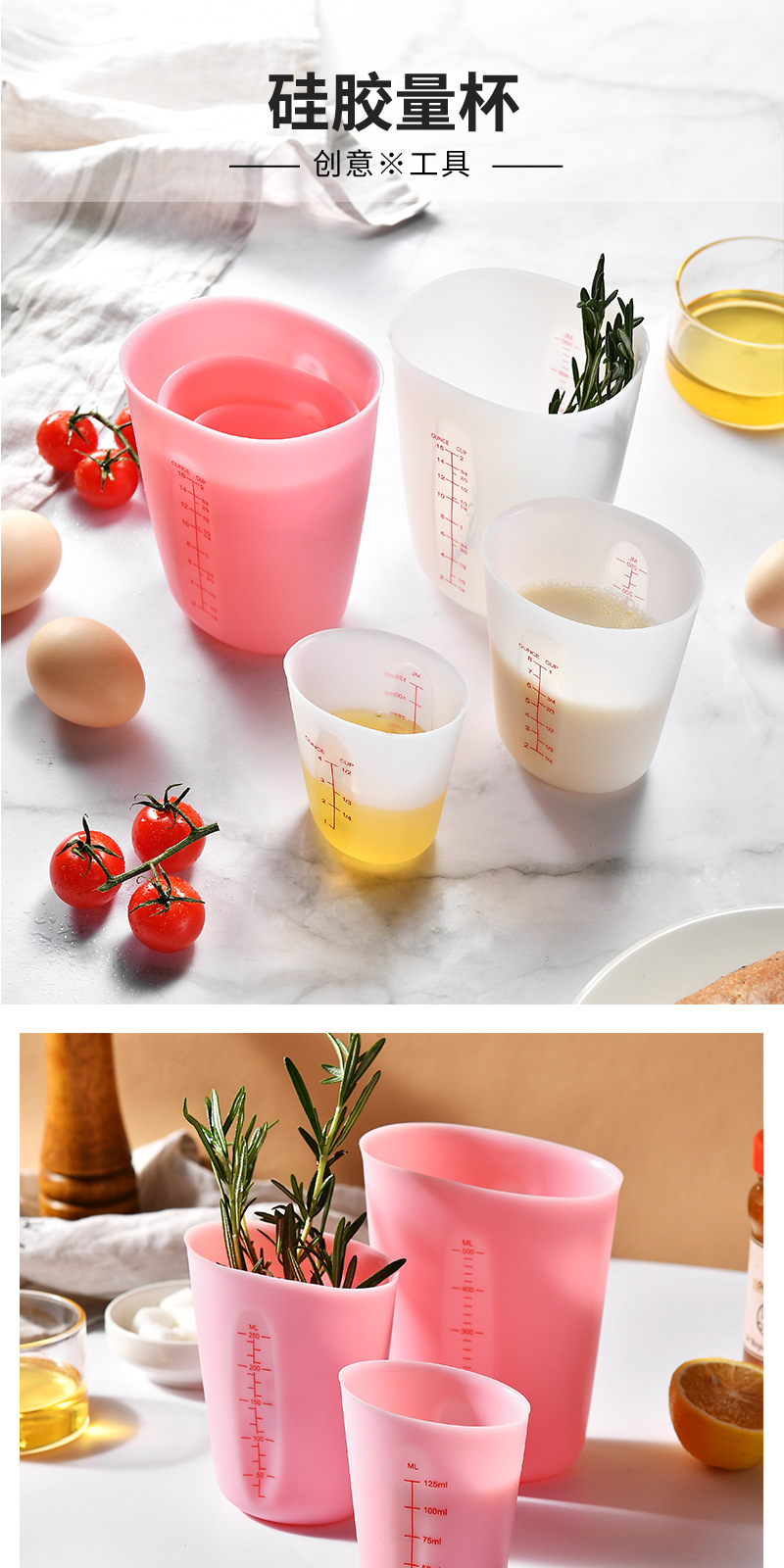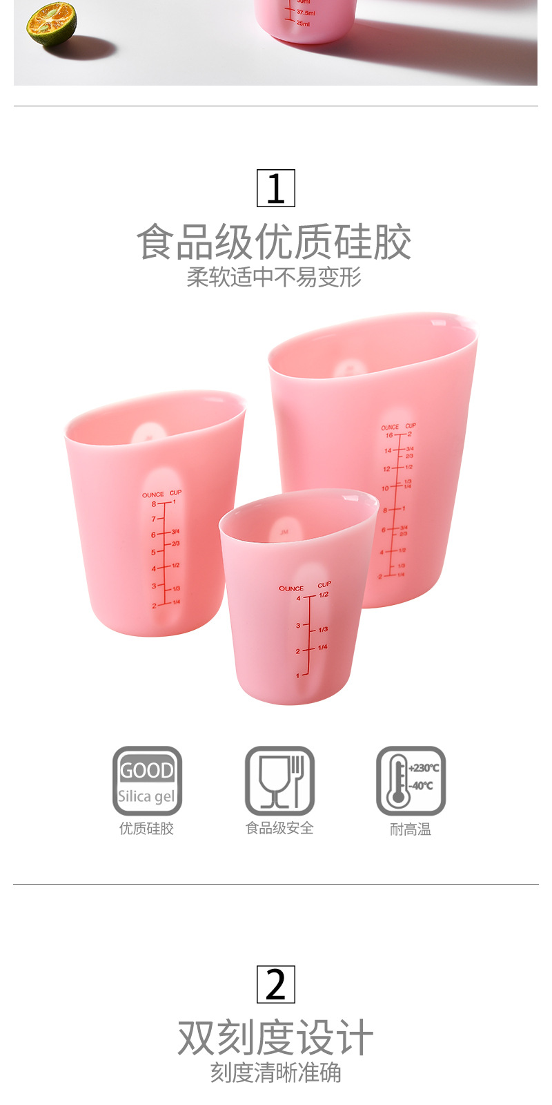 국경 실리콘 측정 컵 3 피스 세트 시각적 이중 스케일 ml/온스 측정 컵 가정용 고온 베이킹 측정 컵스토어 가기