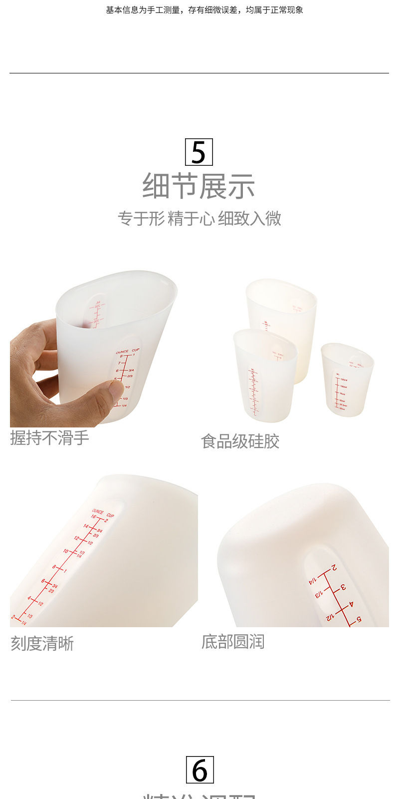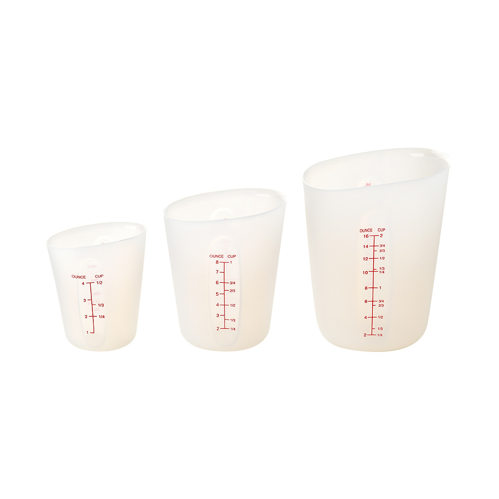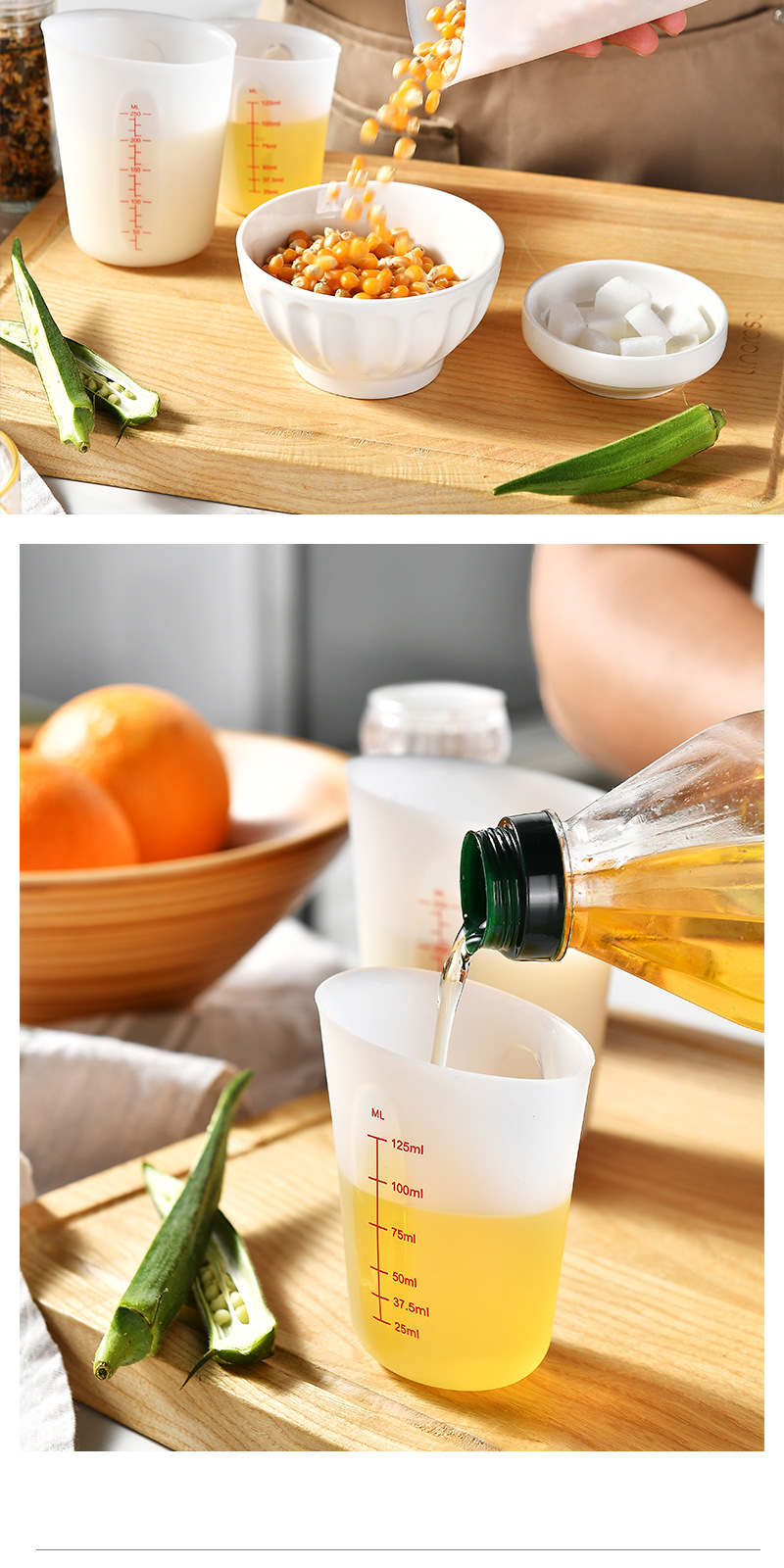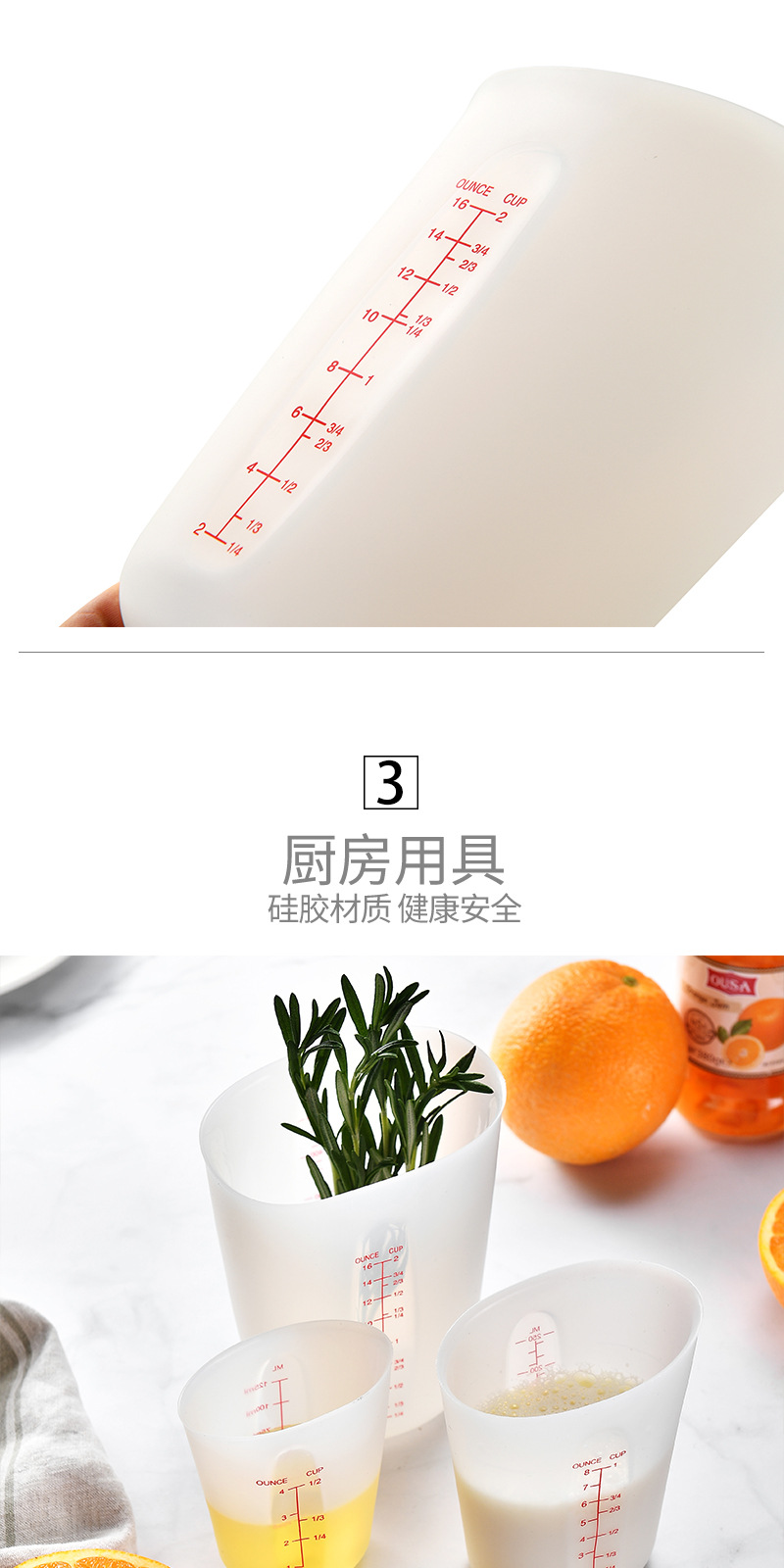 국경 실리콘 측정 컵 3 피스 세트 시각적 이중 스케일 ml/온스 측정 컵 가정용 고온 베이킹 측정 컵