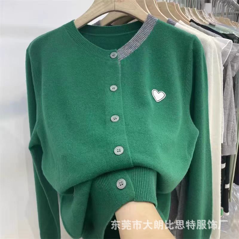 봄과 가을 새로운 한국 스타일 부드러운 스타일 니트 카디건 여성 테이프 긴팔 베이스 탑 서양식 느슨한 스웨터 코트스토어 가기