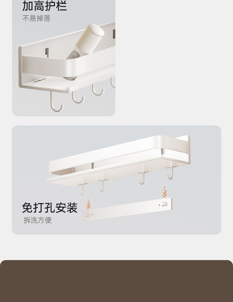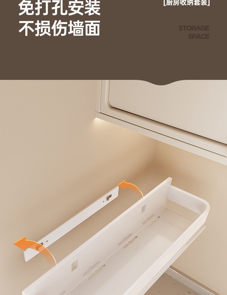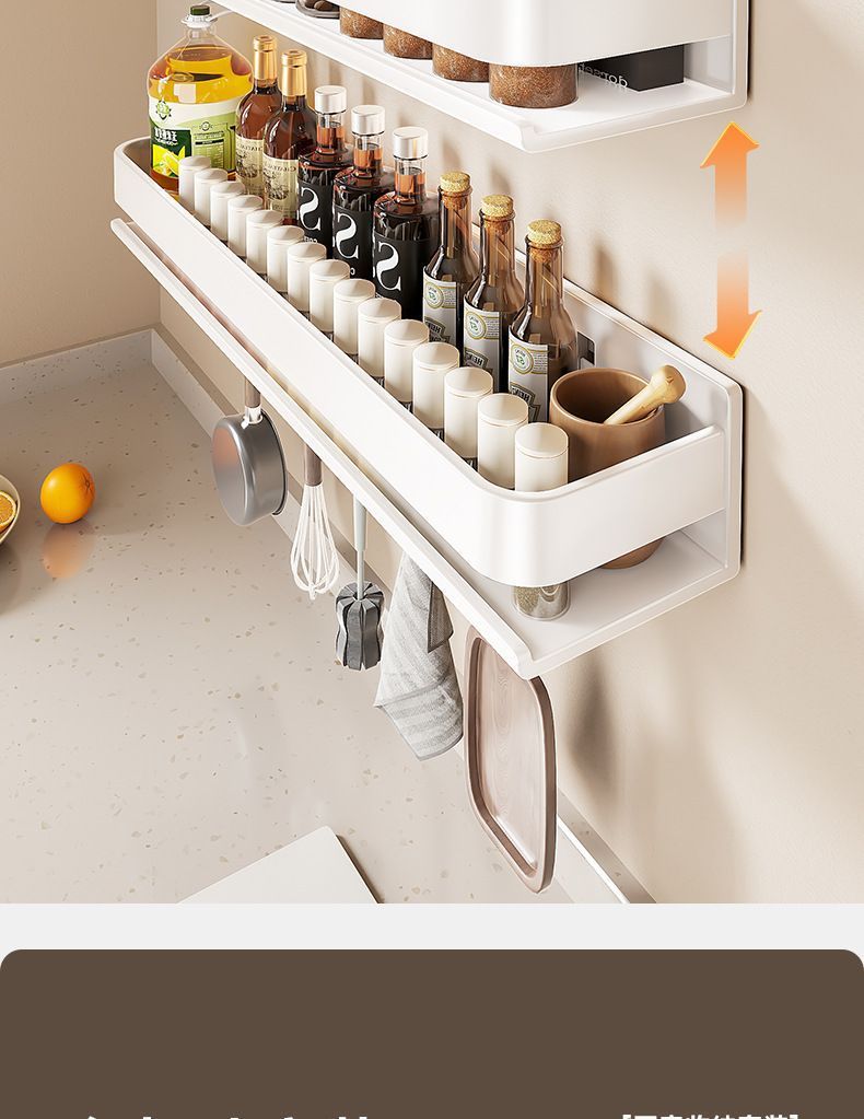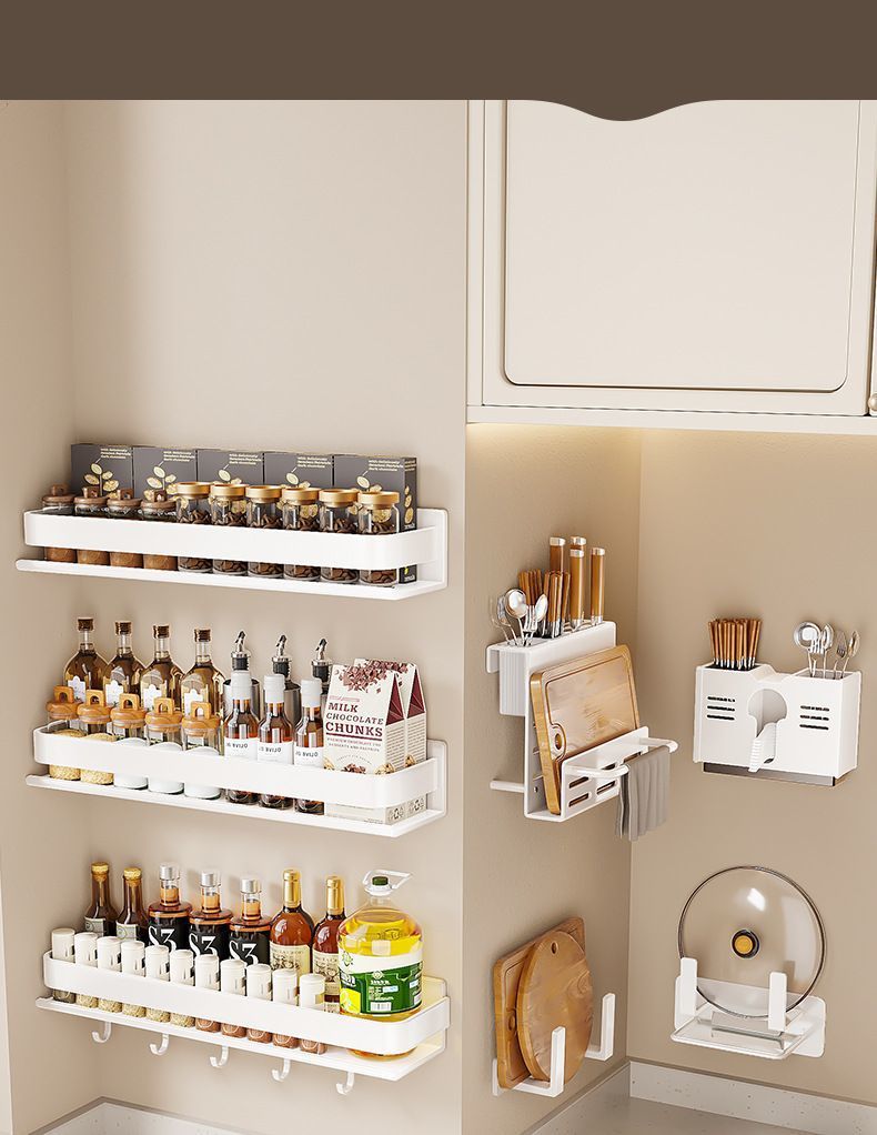 유백색 주방 수납 선반, 향신료 선반, 펀치 없는 벽걸이형 다기능 주방 용품 수납 선반, 탄소강 도매